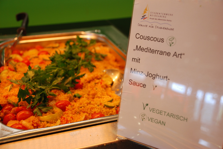 Einen Tag lang gab es in den Heidelberger Mensen nur vegetarische oder gar vegane Kost. Keine Salami-Brötchen, kein Schweineschnitzel. Mit diesem Aktionstag wollte das Studentenwerk in Zusammenarbeit mit der Albert-Schweitzer-Stiftung die Studenten von einem bewussteren Essverhalten überzeugen. Zuerst sorgte die Menübildschirme in der Triplex-Mensa für Verwirrung: Sie zeigten für die Aufgänge B und C die gleichen Gerichte an. „Gibt es jetzt bei Aufgang B und C gefüllte Paprika und Vegetarische Bolognese?“, wunderte sich Marlene. Tatsächlich gab es die vorher im Magazin des Studentenwerks angekündigten Gerichte trotzdem. Beiden Aufgänge waren jedoch leerer als üblich, was auch am guten Wetter und dem nahenden Ende der Vorlesungszeit gelegen haben kann.