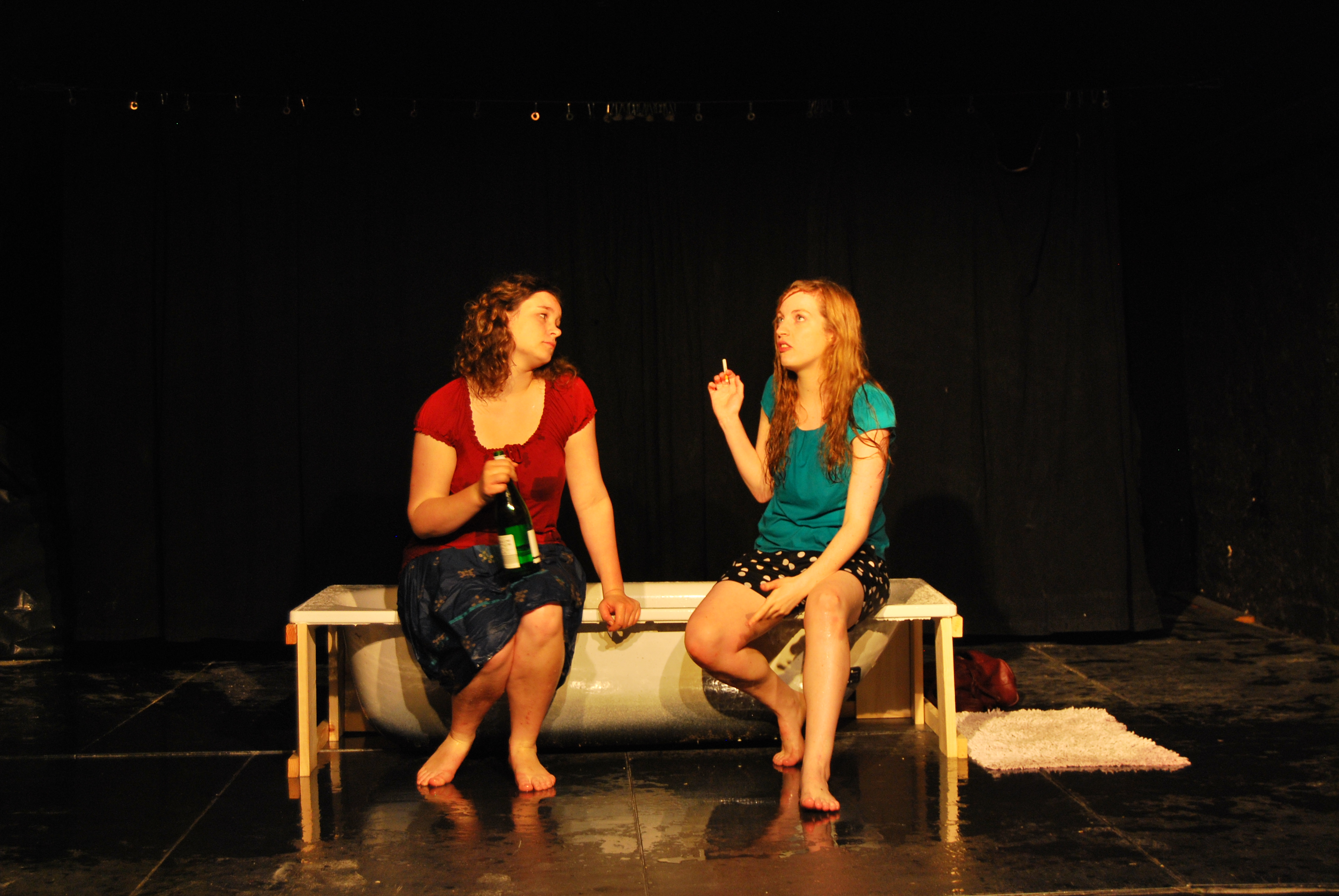 Die 22-jährige Isabella Freilinger ist die Autorin des Stückes „Water Wings“. Auf der Bühne sieht man eine Badewanne. Kara springt in voller Montur hinein und das Wasser spritzt über den Boden. Anne hingegen traut sich nicht und würde gern lieber ihre Schwimmflügel holen. Kara taucht mit dem Kopf unters Wasser und sagt plötzlich nichts mehr. Anne findet das nicht lustig, sie hat Angst, dass ihre Freundin ertrunken ist. Als Kara wieder auftaucht, zieht sie Anne ins Wasser und lacht.