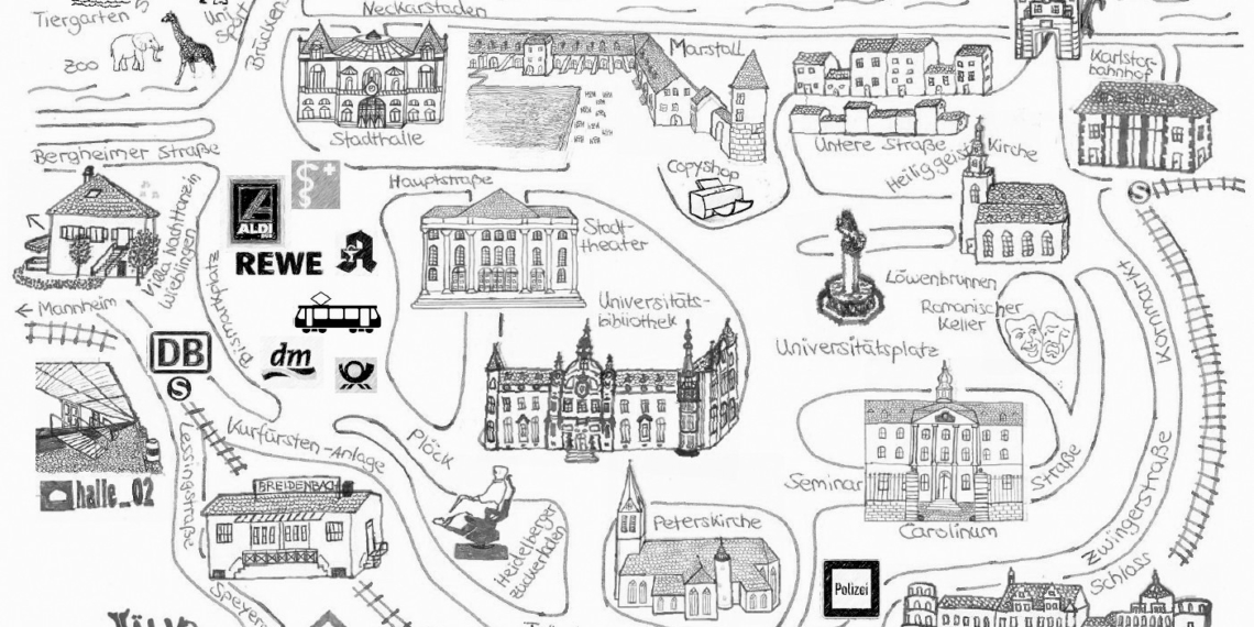 Hier lernt ihr die wichtigsten Orten in Heidelberg kennen. Wenn ihr mehr über den Heidelberger Zuckerladen, die Breidenbachstudios oder die Untere Straße erfahren wollt, dann einfach die Maus draufhalten!