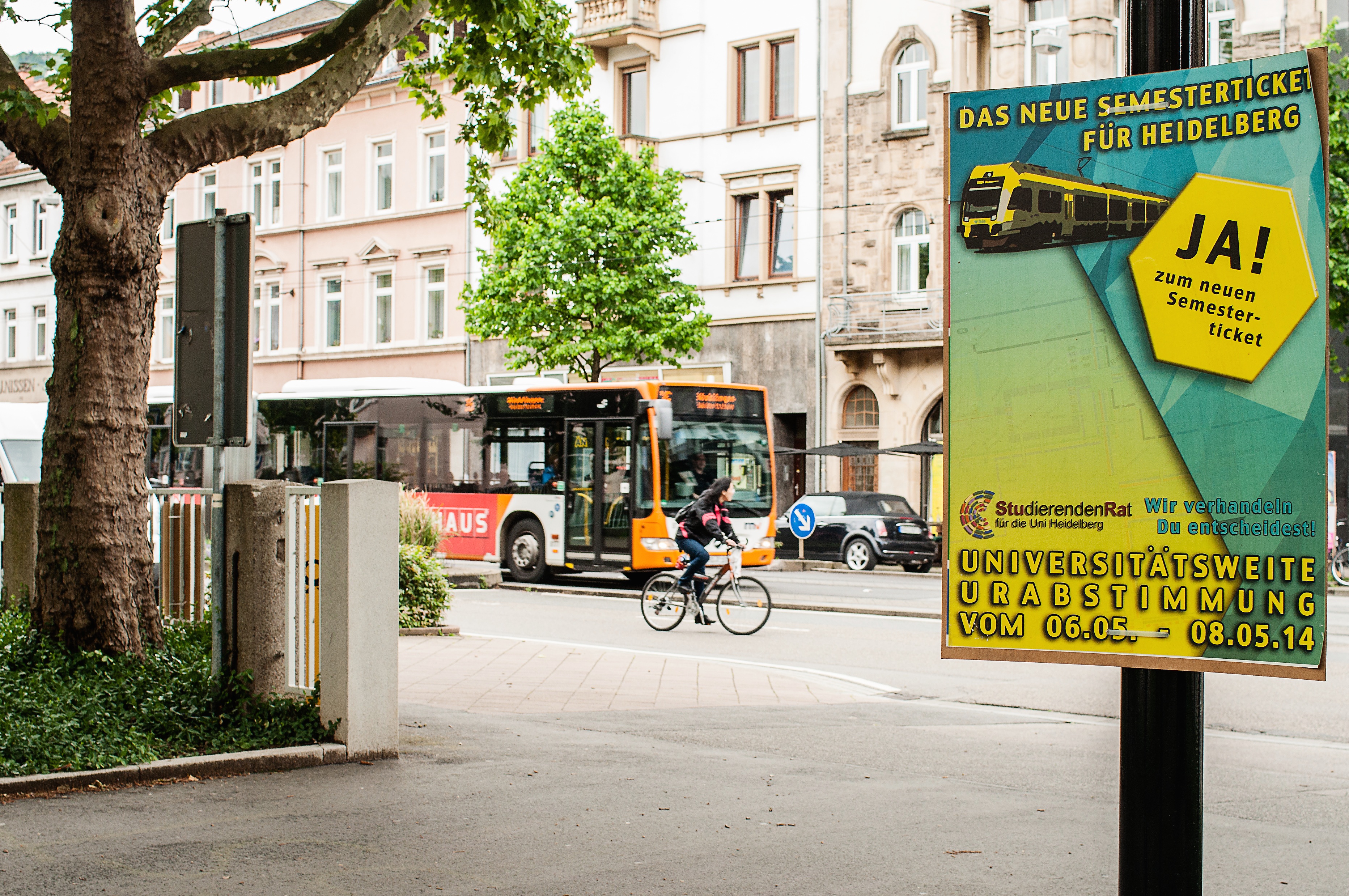 Die Studenten der Universität Heidelberg haben über das Semesterticket der nächsten fünf Jahre abgestimmt. Mit großer Mehrheit wurde den vorgeschlagenen Konditionen für den Fahrschein zugestimmt; die Abend- und Wochenendregelung wird jedoch nicht auf das gesamte Tarifgebiet des Verkehrsverbunds Rhein-Neckar (VRN) ausgeweitet. In diesem Jahr hatten StuRa und PH-StuPa in Zusammenarbeit mit dem Studentenwerk erstmals die Verhandlungen mit dem VRN geführt. Der aktuelle Vertrag läuft zum Ende des Sommersemesters 2014 aus.