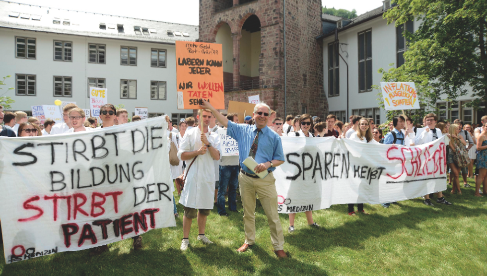 Verglichen mit anderen Fakultäten hat die Medizin in Heidelberg ein wesentlich größeres Budget. Allerdings hat sie weit höhere Ausgaben. Zusätzlich zu Lehre und Forschung werden Kliniken zur praktischen Ausbildung unterhalten. Darin liegt der größte Kostenpunkt. Daher befürchtet man in der Medizin den Abbau von Studienplätzen. „Wir brauchen mehr Ärzte in Deutschland, können diese aber nicht ausbilden, weil es kein Geld für mehr Studienplätze gibt“, sagt Özden Doğan von der Fachschaft Medizin. „Jegliche Einsparungen in der Medizin, bedeuten eine Einsparung an der Gesundheit der Bevölkerung.“ Die Medizinstudenten seien vor ihrem Abschluss „am Wohl unserer zukünftigen Patienten interessiert“, deshalb, sagt Doğan, setze man sich lautstark für eine gute Lehre in der Medizin ein.