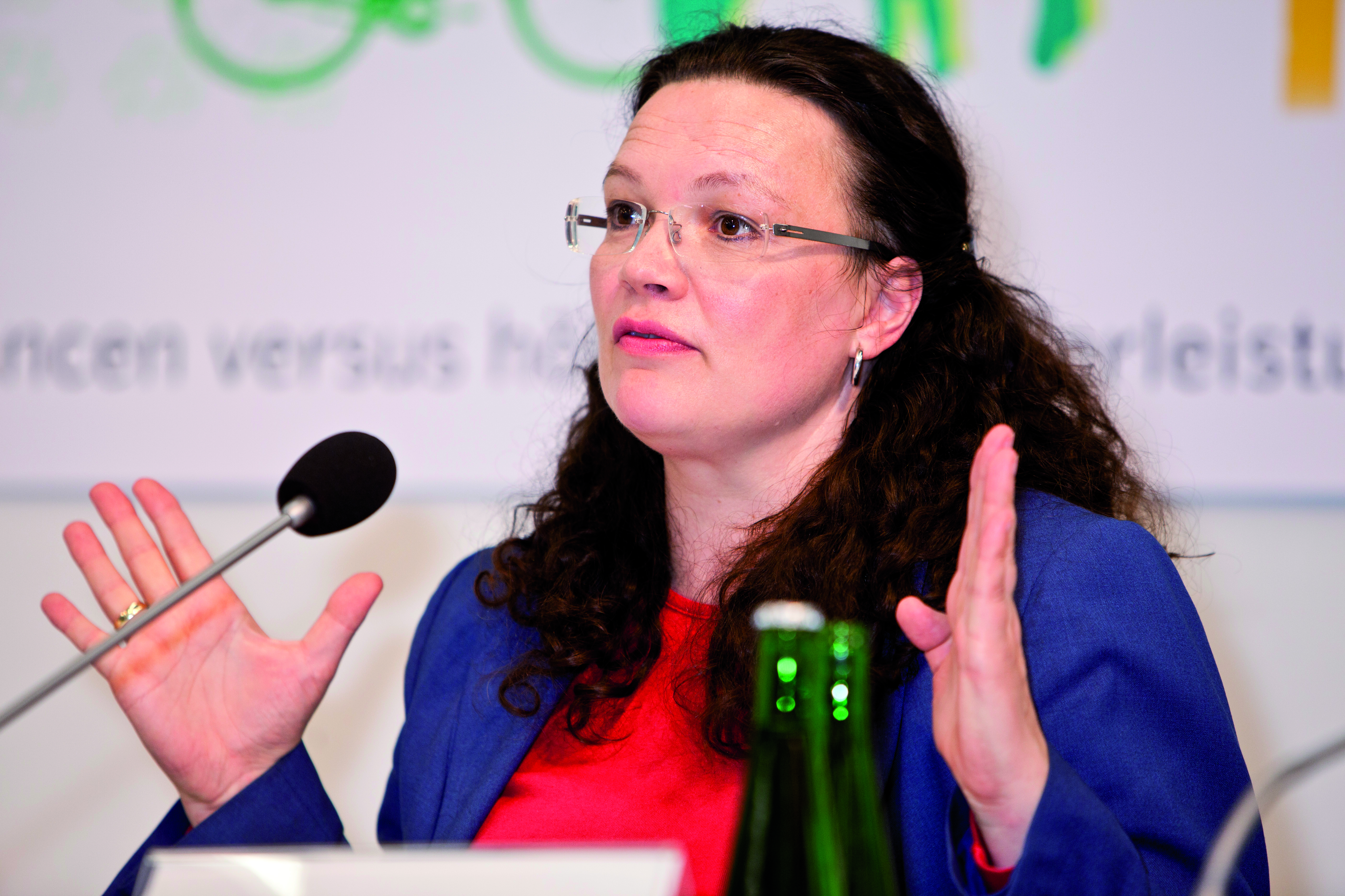 Andrea Nahles’ Ministerium war federführend beim Mindestlohngesetz. Bild: Heinrich-Böll-Stiftung (https://upload.wikimedia.org/wikipedia/commons/thumb/8/8a/Andrea_Nahles_3.jpg/1200px-Andrea_Nahles_3.jpg). Lizenz: Attribution-Share Alike 2.0 Generic (https://creativecommons.org/licenses/by-sa/2.0/deed.en)