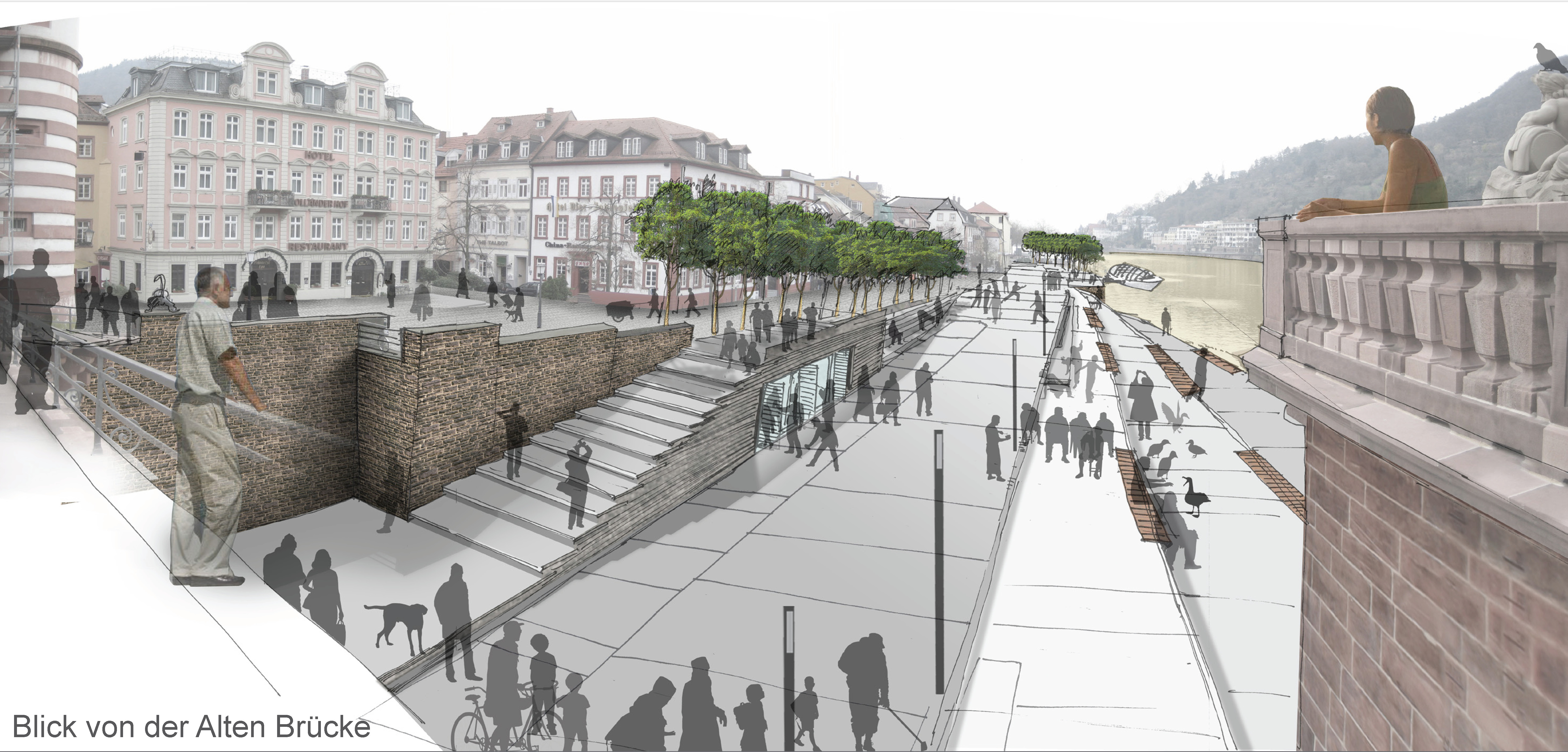 So soll er aussehen, der Blick von der Alten Brücke - wenn die "Stadt am Fluss" tatsächlich Wirklichkeit wird. Bild: Stadt Heidelberg
