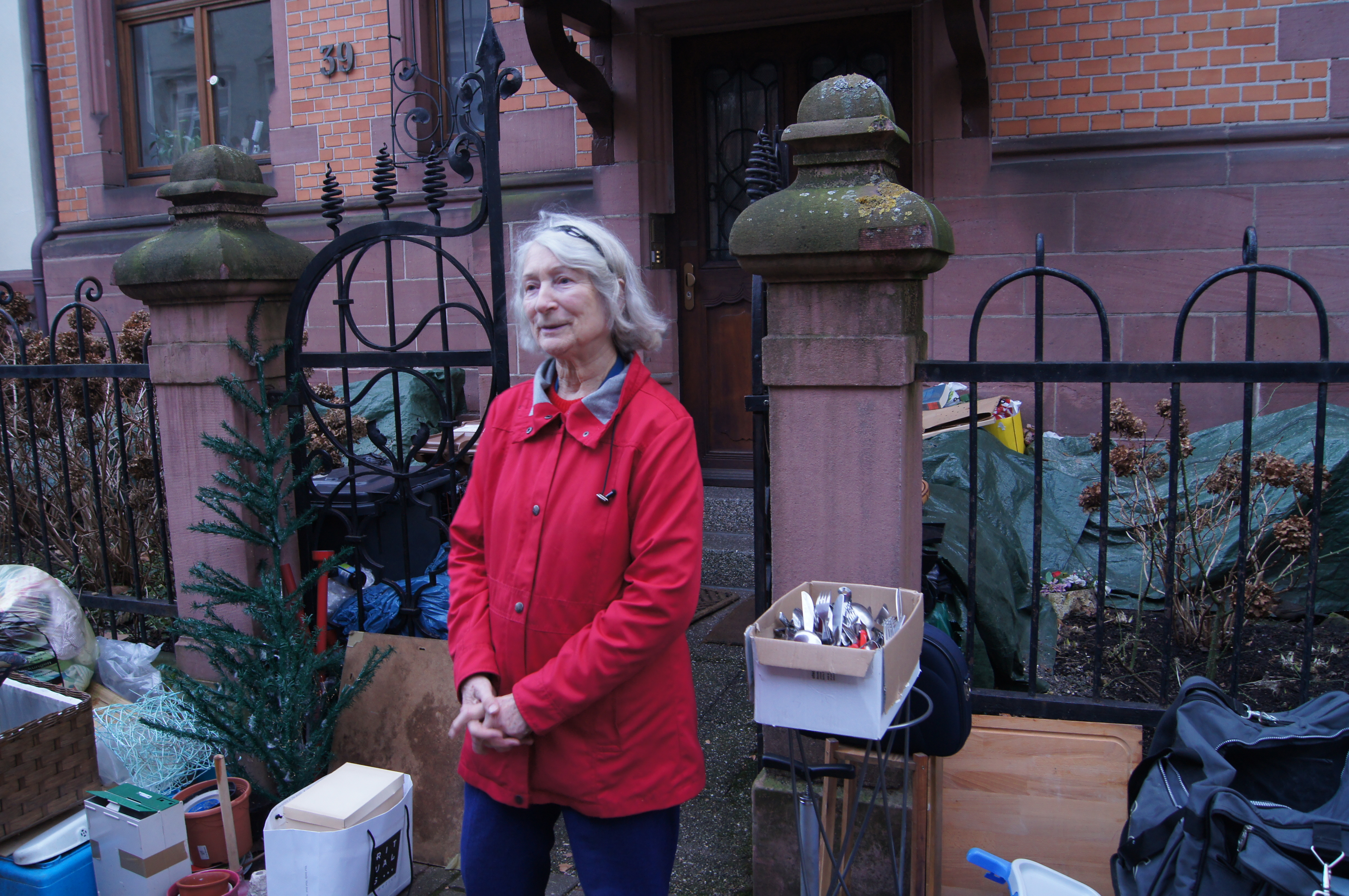 Das Prinzip des Gebens ohne Gegenleistung lebt Ursula Hyder seit mehr als 20 Jahren. Vor ihrem Haus in der Kaiserstraße, das sie schon ihr Leben lang bewohnt, stapeln sich Kisten mit Besteck, Lampen und anderem Hausrat. Mehrmals wöchentlich zieht die 75-Jährige mit zwei ausrangierten Kinderwagen durch die Heidelberger Stadtteile und sammelt funktionstüchtige Gegenstände, die auf dem Sperrmüll gelandet sind. Mittlerweile bringen ihr zusätzlich viele Bekannte und Nachbarn Aussortiertes. Auch Lebensmittel erhält sie regelmäßig gespendet, sodass sie selbst kaum noch Geld ausgibt.