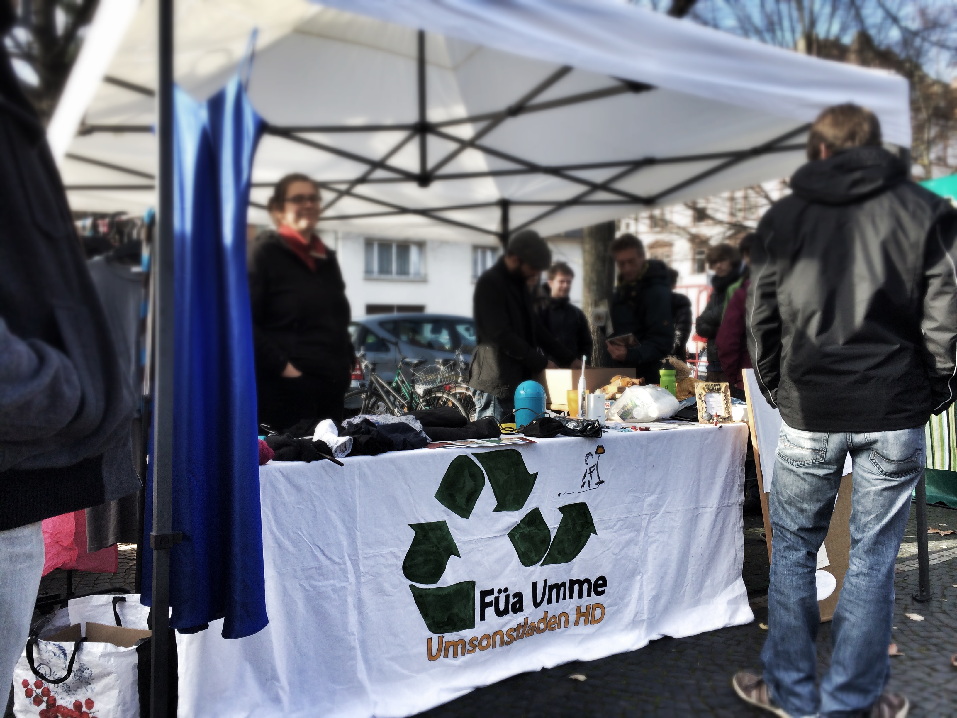 Füa Umme – Umsonstladen Initiative Heidelberg: jeder erste und dritte Samstag im Monat auf dem Weststadtmarkt: www.umsonstladenheidelberg.wordpress.com