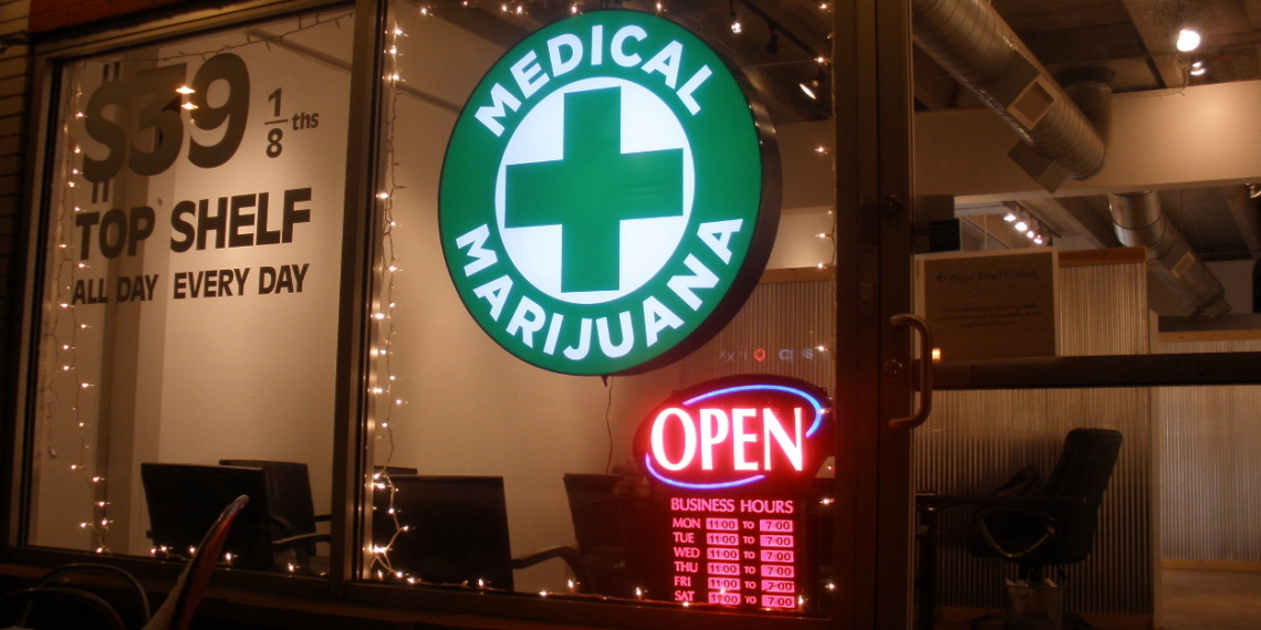 In vielen Bundesstaaten der USA ist Cannabis nicht nur für medizinische Zwecke bereits legal zu haben, Bild: O’Dea/WikiCommons (https://upload.wikimedia.org/wikipedia/commons/thumb/1/12/Discount_Medical_Marijuana_-_2.jpg/1200px-Discount_Medical_Marijuana_-_2.jpg) Lizenz: CC BY-SA 3.0 (https://creativecommons.org/licenses/by-sa/3.0/deed.en)