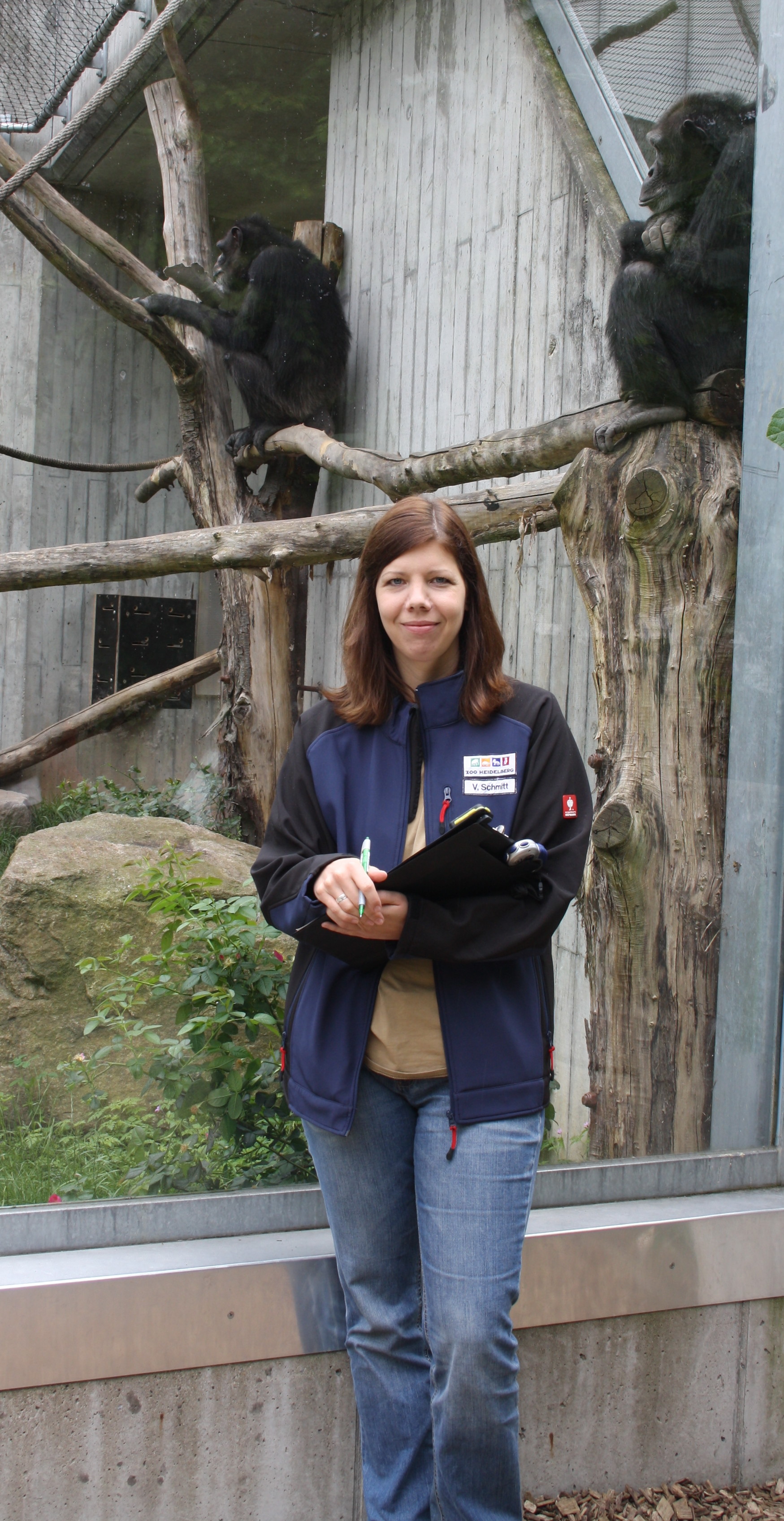 Im Heidelberger Zoo haben wir mit Vanessa Schmitt gesprochen, die dort Kognitionsforschung mit Affen betreibt. Seit ihrem Studium der Verhaltensbiologie in Kaiserslautern und Göttingen erforscht sie die Intelligenz von Tier- und Menschenaffen. Konkret bedeutet das, dass die Tiere mit Aufgaben betraut werden, wie sie aus der entwicklungspsychologischen Forschung mit kleinen Kindern bekannt sind.