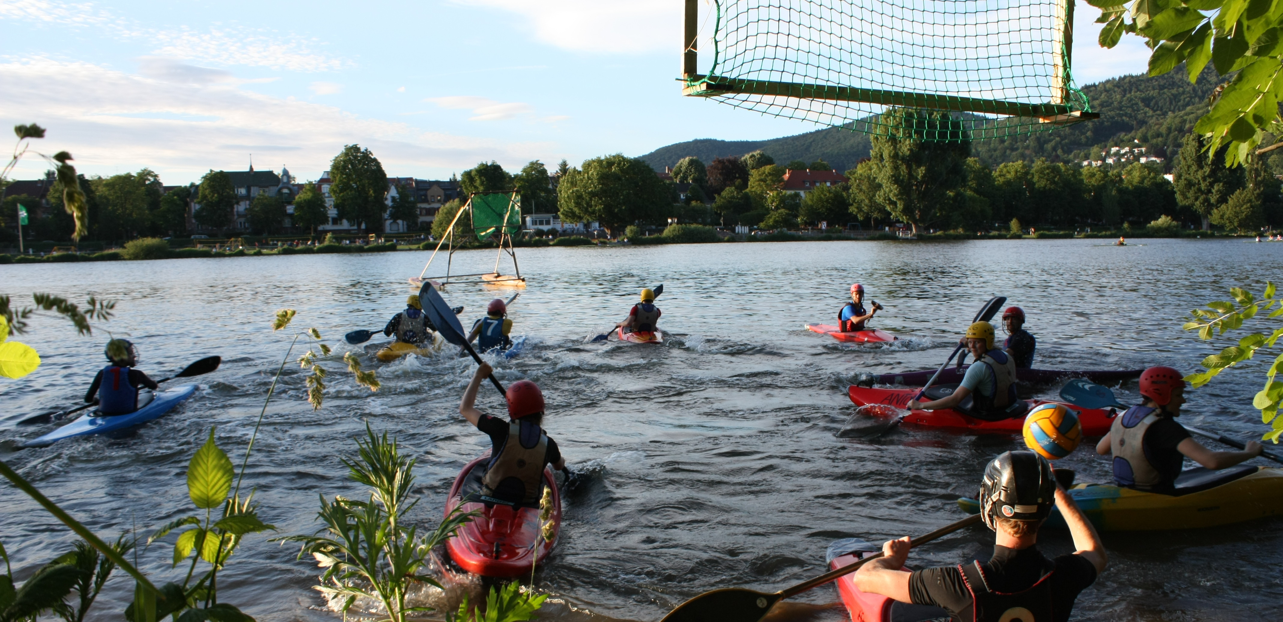 Was vom Neckarufer nach einer großen Karambolage von Kajaks aussieht, nennt sich „Kanupolo“. „Es ist eine Mischung aus Handball und Schiffe versenken – der Spieler im Ballbesitz darf nämlich versenkt werden!“, erzählt die Studentin Hannah Rothermel. Die 24-Jährige spielt seit drei Jahren Kanupolo und gehört zum Team der Heidelberger Mannschaft „Neckarkrokodile“.