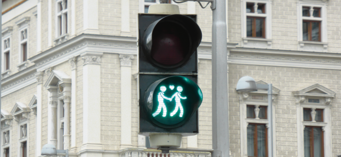 In der österreichischen Hauptstadt wurden an fast 50 Fußgängerüberwegen die Ampelmännchen gegen homo- und heterosexuelle Pärchen ausgetauscht. Zu sehen sind nun immer zwei Menschen als Piktogramm, die mit einem kleinen Herz verziert sind. Bei Rot umarmen sich die beiden Figuren, bei Grün halten sie sich an den Händen.