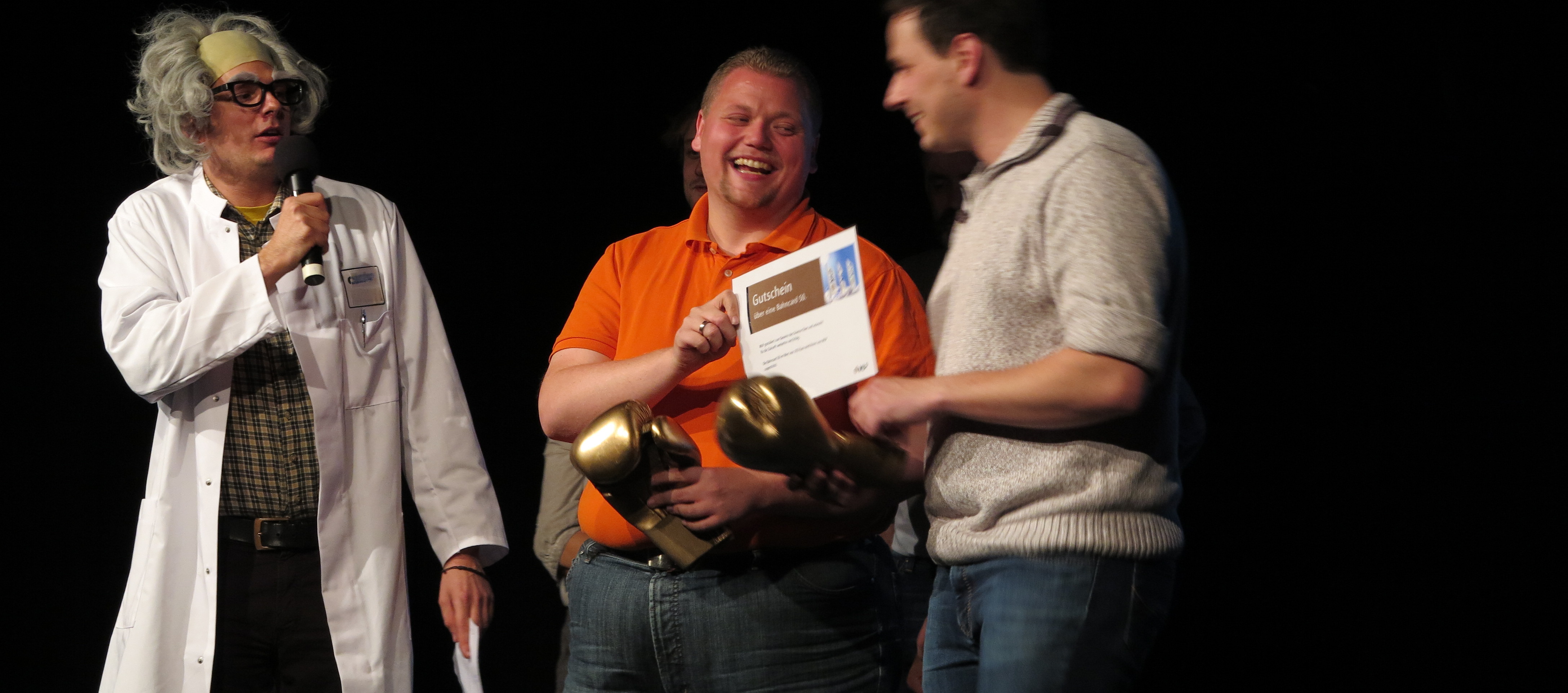 Das erleuchtete und nun deutlich klügere Publikum wählte durch das Applausometer seinen Favoriten. Am Ende des Abends erhielten ein stolzer Chemiker und ein etwas aus der Puste geratener Mediziner die goldenen Boxhandschuhe des 6. Heidelberger Science Slams. Wäre die Wissenschaft nur immer so anschaulich und unterhaltsam, dann hätte die Menschheit weniger Halbwissen und deutlich mehr Spaß an komplizierten Begriffen.
