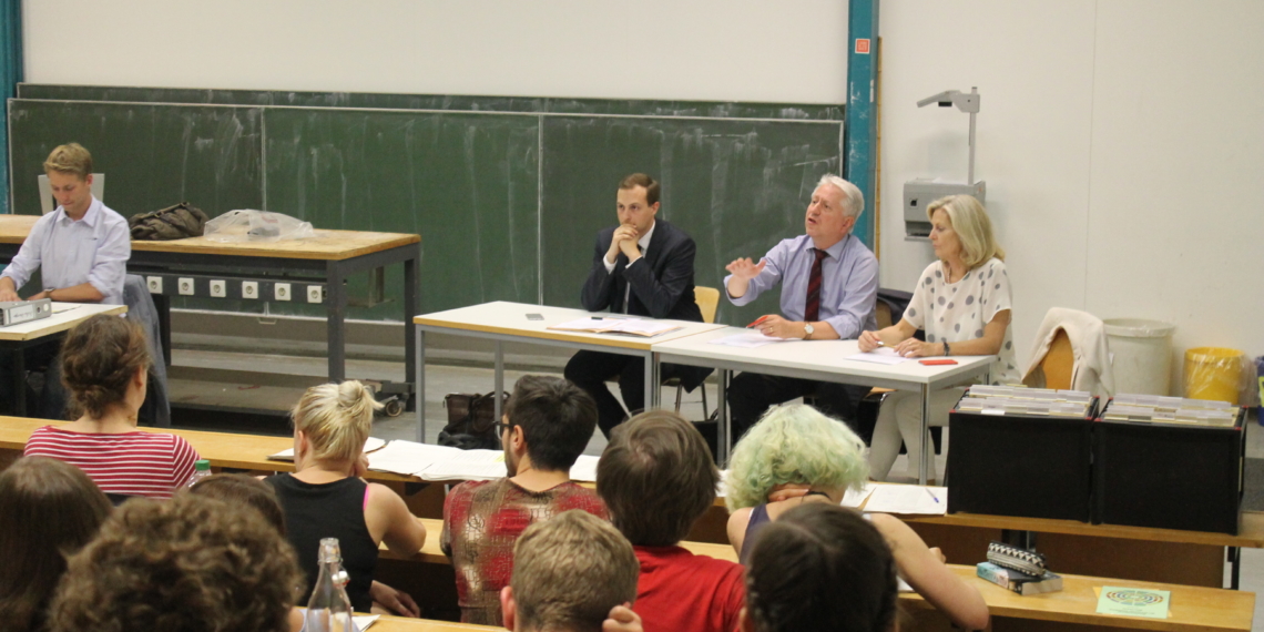 Nach 80 Minuten war Eitels Besuch auch schon vorbei. Er versprach wiederzukommen und wünschte „alles Gute für die letzten Wochen des Sommersemesters“.