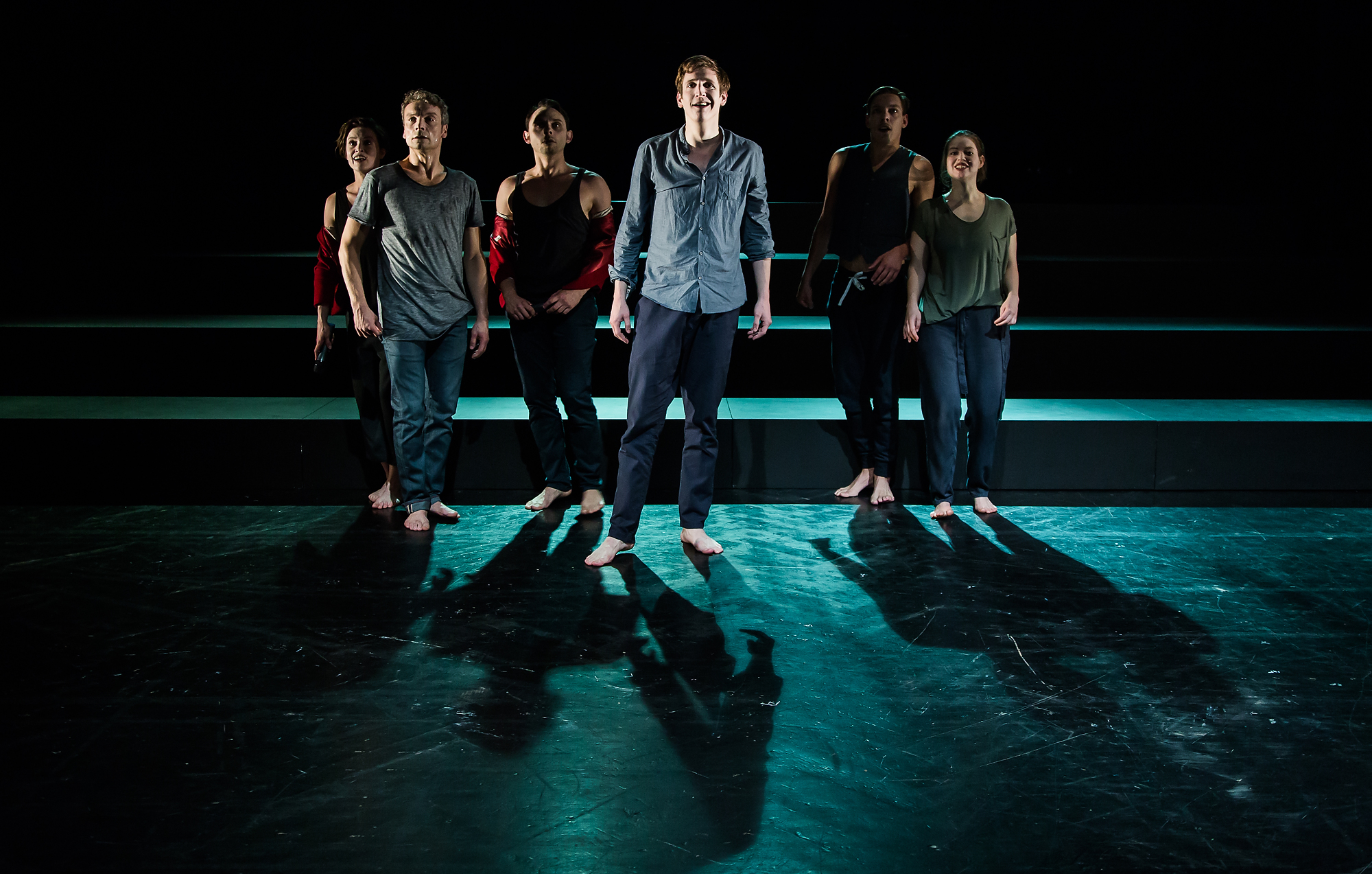 Die erste Feststellung: Es gibt keine klaren Rollen. Die sechs Schauspieler verkörpern situativ ständig wechselnde Charaktere. Mal sind sie Jugendliche, mal Erwachsene, mal erzählen sie als gebrochene Menschen von Kriegserlebnissen, um dann wieder fröhlich johlend durch den Saal zu tanzen. Immer wieder dominiert die Gewalt, die Gewalt im Internet, im Computerspiel, genauso wie der Krieg, der sich, von den Jugendlichen zumeist unbemerkt, in der Welt abspielt.
