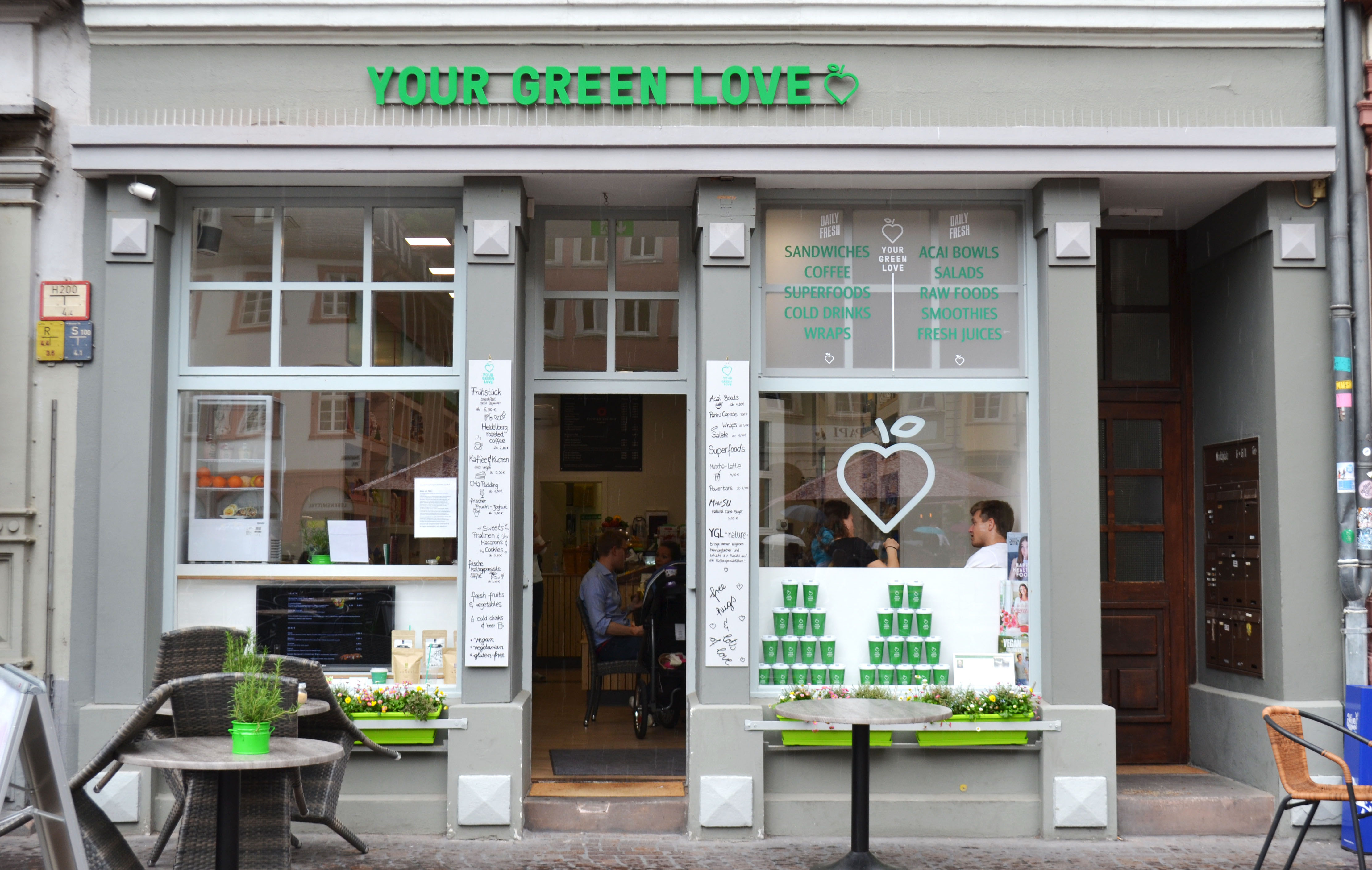 Seit Anfang April lockt „Your Green Love“ nun schon Kunden vorläufig zum Zwecke des Antestens in seine frisch sanierten Räume. Die offizielle Eröffnung ist für den 17. Mai angesetzt. Dann soll man hier gut frühstücken, lecker und leicht Mittagessen können oder auch nur kurz für einen Fair Trade-Kaffee einkehren. Und wenn der Sommer dann endlich kommt, lässt sich auf dem belebten Heidelberger Marktplatz somit die Sonne genießen und „Grün lieben“.