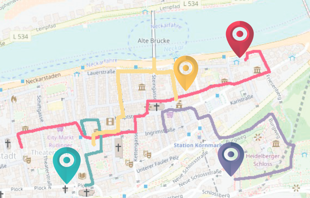 …literarisch Begeisterte, die das altbekannte Heidelberg aus der Perspektive des weltbekannten Schriftstellers erleben möchten. Der Stadtrundgang mäandert, den Erzählungen Twains gleich, durch die Altstadt und die Zeitgeschichte. In zwei Stunden werden Orte, die in dem Roman Erwähnung finden, besucht und zusätzliche Hintergrundinformationen, sowohl zu Heidelberg des 19. Jahrhunderts und der Geschichte der Uni, als auch zur Biographie des Künstlers zusammengetragen. In Englisch gehalten sind dennoch die meisten Teilnehmenden Einheimische und Kenner der Stadt, auch ist die Anzahl dieser überschaubar.