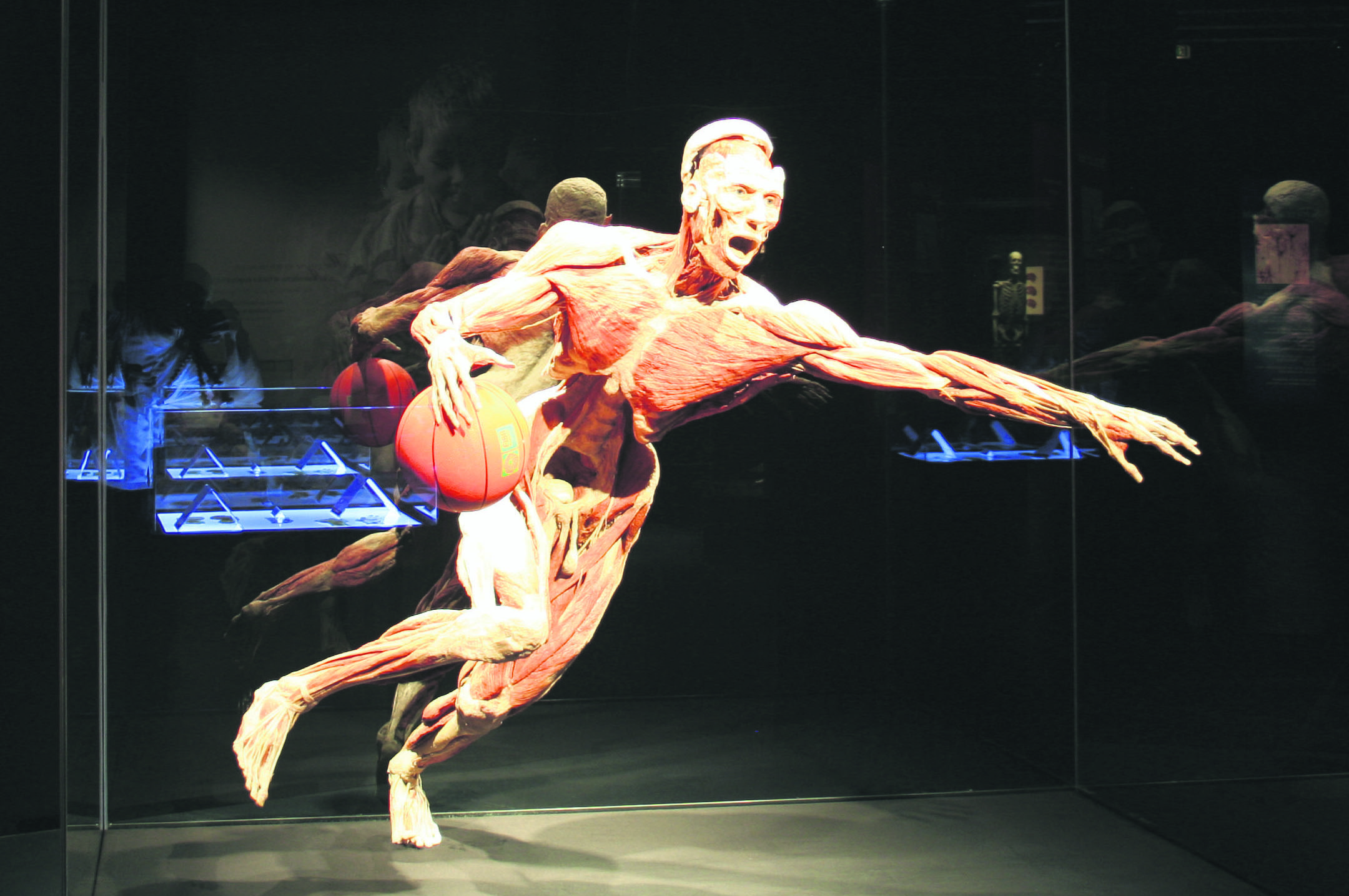 Ein präparierter Basketballspieler in der Körperwelten-Ausstellung (Gunther von Hagens‘ KÖRPERWELTEN, Institut für Plastination, Heidelberg, www.koerperwelten.de)
