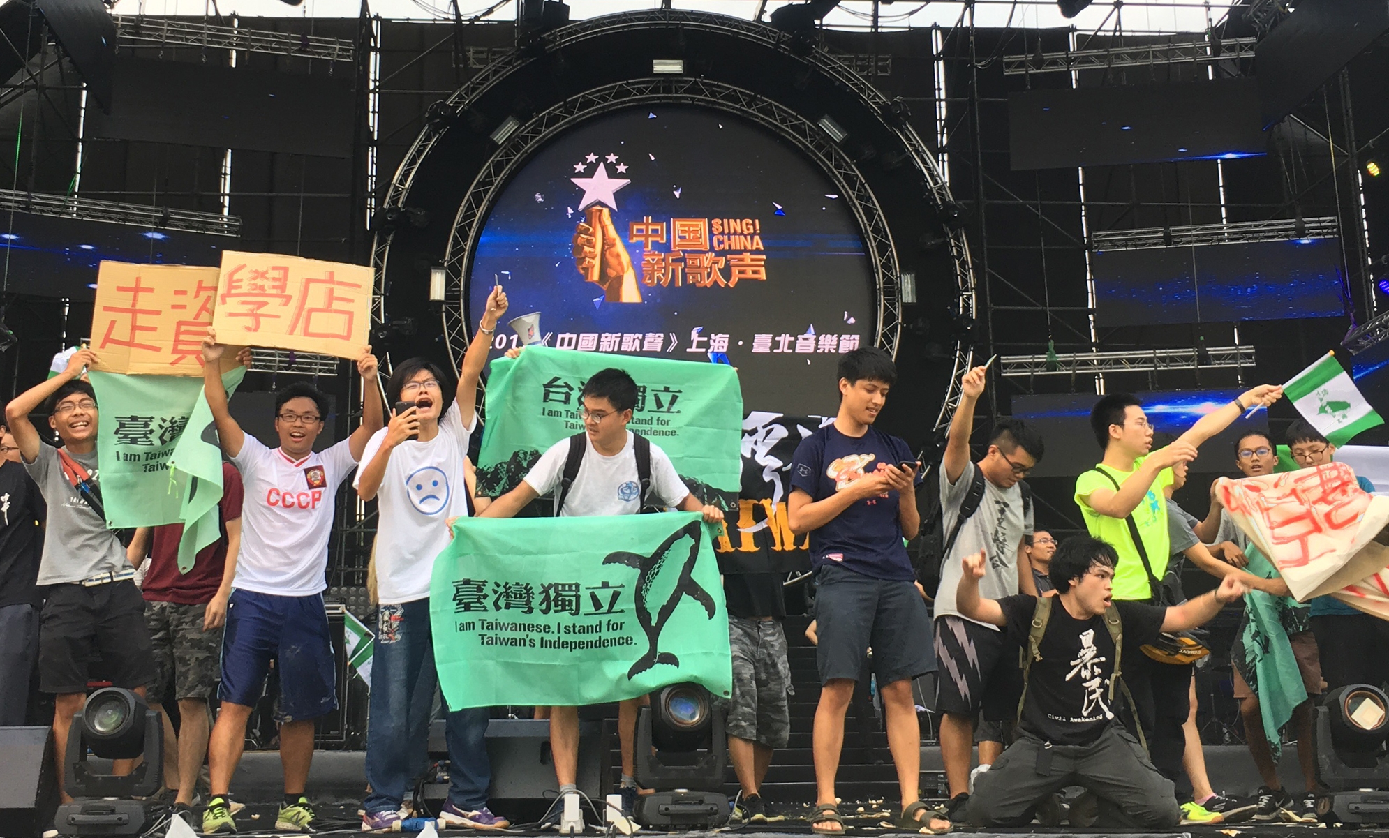 Aber nicht alle Konzertbesucher sind wegen der Musik gekommen: Kurz nach Beginn der Veranstaltung übertönen etwa hundert Studierende die Popmusik mit Sprechchören und Trillerpfeifen. „Ein unabhängiges Land gründen“, „Freies Taiwan“ und „Selbstbestimmung für die, die hier leben“ ist auf Transparenten zu lesen. Die Studenten durchbrechen die Sicherheitssperre und stürmen die Bühne. Gegen vier Uhr beendet die Universitätsverwaltung aus Sicherheitsbedenken das Konzert. Kurz darauf stößt ein Anhänger der pro-chinesischen Wiedervereinigungspartei mit einem protestierenden Studenten zusammen. Ein Youtube-Video zeigt, wie das einundsechzigjährige Parteimitglied dem Studenten mit einem Schlagstock ins Gesicht prügelt.