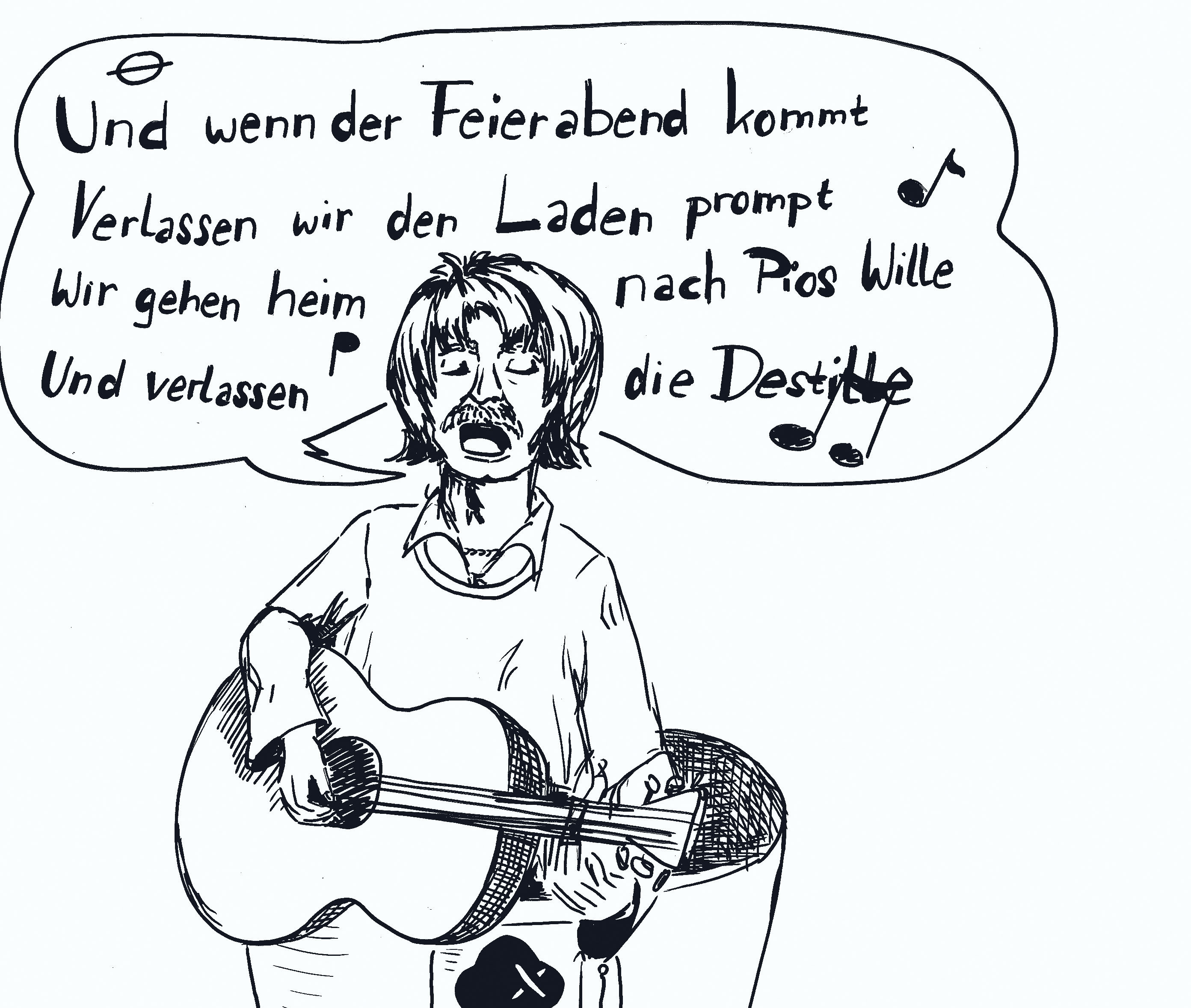 Damals lief das Lied zum Feierabend, um den letzten Gästen die Schließung der Kneipe anzukündigen und sie mit einem „Ihr habt jetzt doch genug Promille, geschlossen ist jetzt die Destille“ freundlich hinauszuwerfen. Wie es typischerweise mit großartigen Liedern leider ist, wenn man sie zu häufig hört, wurde mit dieser Tradition irgendwann gebrochen. Das Stück wird mittlerweile nur noch sporadisch bei einem Anflug von Nostalgie aufgelegt. Aber es ist mit Sicherheit kein Ding der Unmöglichkeit, einmal bei Kneipenschluss in den Genuss dieses Meisterwerks zu kommen. Auch unsere Redaktion ist erst auf das Lied aufmerksam geworden, als eine unserer Mitarbeiterinnen kürzlich bei Kneipenschluss von den Gitarrenklängen überrascht wurde.