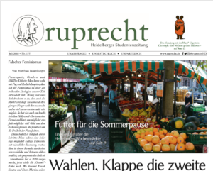 die Ausgabe sollte es noch in unseren Aufstellern in der Triplex und in der Zentralmensa im Neuenheimer Feld geben – falls sie schon leer sein sollten, füllen wir sie zeitnah nochmal auf!