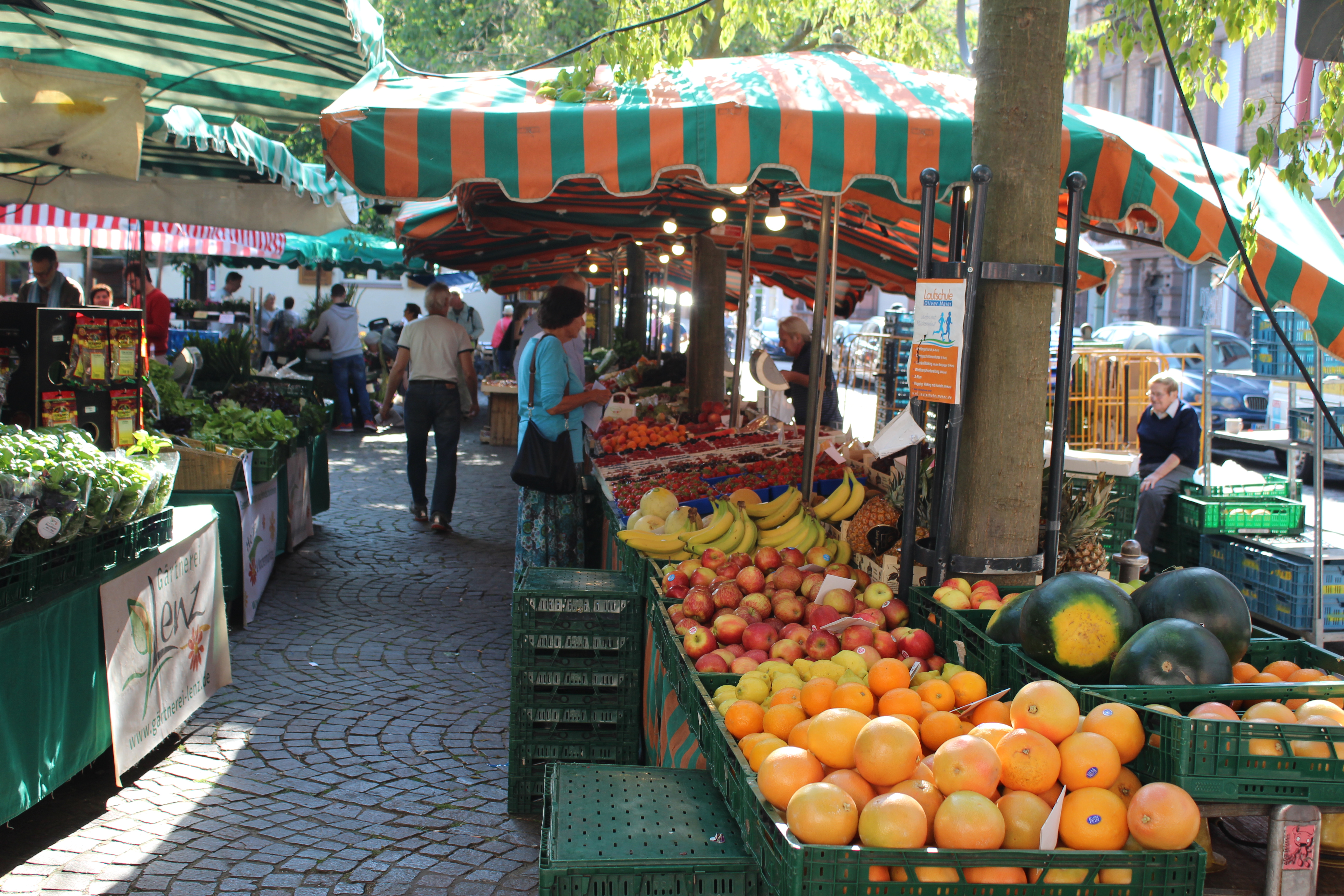 An diesem Donnerstagnachmittag herrscht ein geschäftiges Treiben: Rentner treffen sich hier zum Quatschen mit Freunden, junge Familien erledigen mit ihren Kindern Einkäufe, Studenten holen sich vor dem nächsten Kurs noch schnell ein belegtes Brötchen oder eine frische, heiße Empanada. Der Wochenmarkt donnerstags und freitags auf dem Friedrich-Ebert-Platz ist allein wegen der großen Auswahl an frischen Lebensmitteln und des netten Ambientes einen Besuch wert.