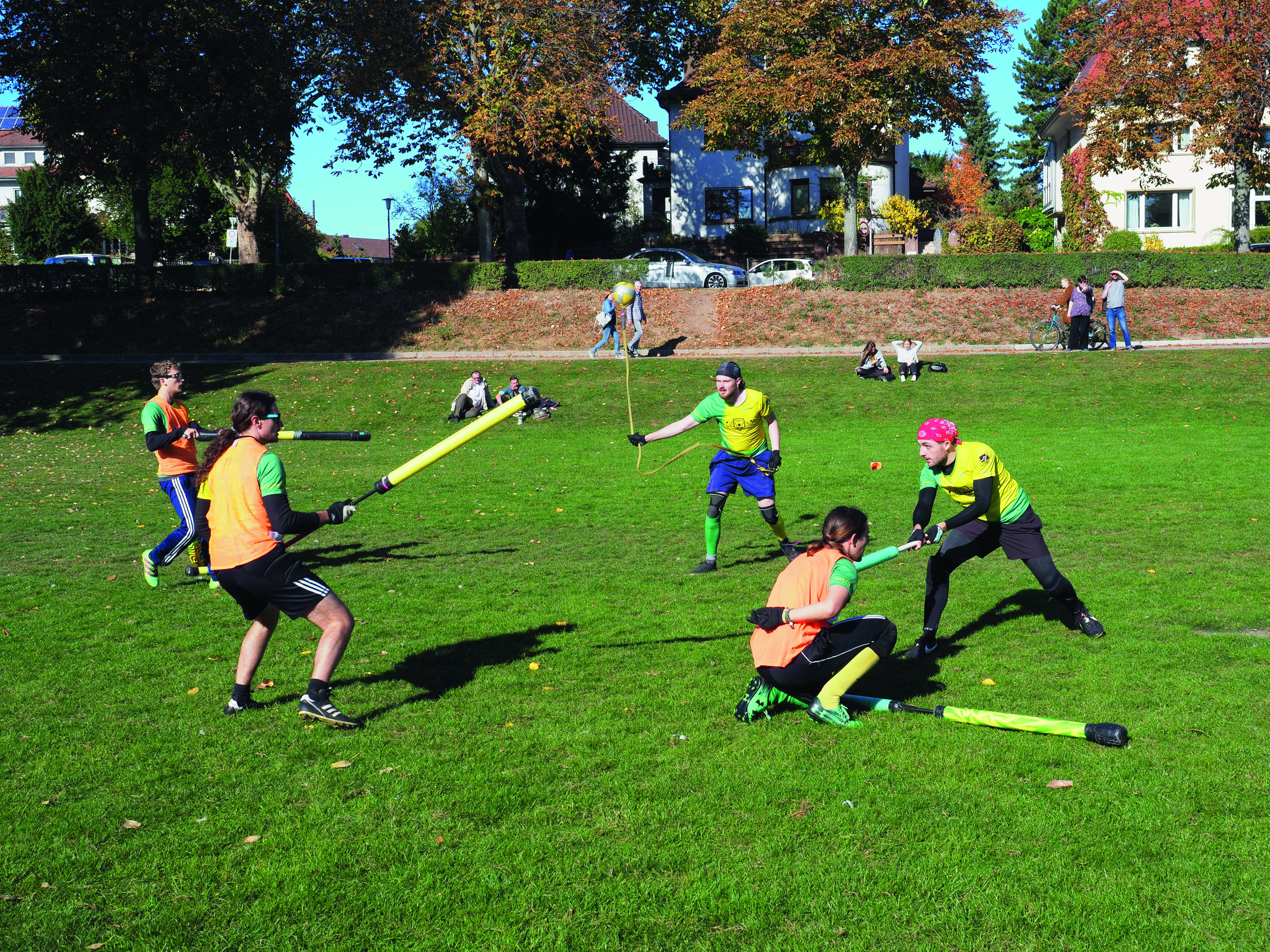 Als mir Alex den feuchten, müffelnden Schaumstofffußball ins Gesicht prügelt, verliebe ich mich. Nicht etwa in Alex, sondern in den Sport, bei dem ich diesen Kopftreffer kassiert habe. Nach einer kurzen Pause steige ich leicht verdutzt wieder ins Spiel ein. Frauen und Männer in bunten Sportoutfits laufen über die Neckarwiese, brüllen sich Kommandos zu und verprügeln sich mit schwimmnudelartigen Waffen. Viele Menschen bleiben stehen, wundern sich, und wollen wissen, was hier passiert.