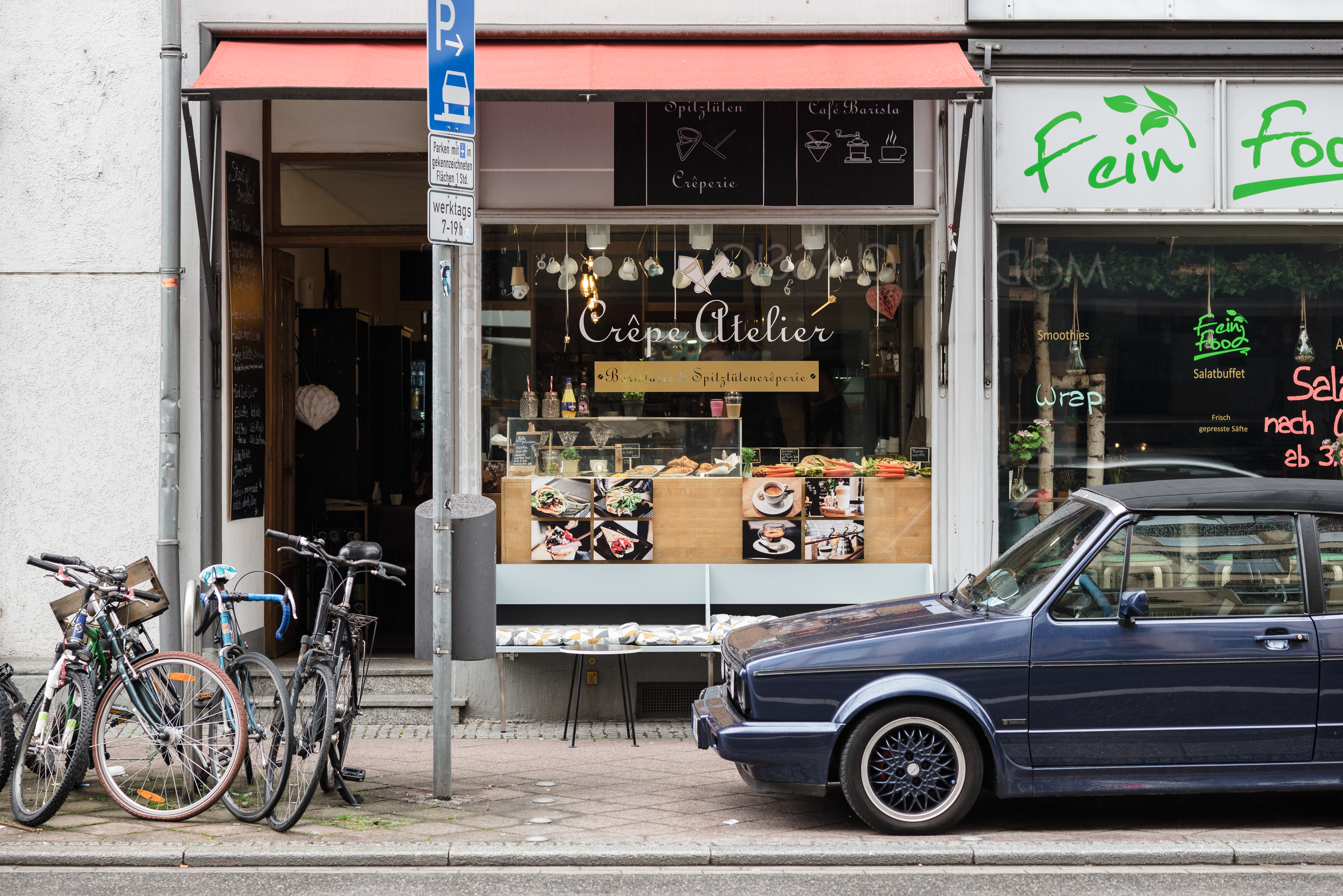 Im Gegensatz zum französischen Klischee ist die Bedienung hier außerordentlich freundlich und die Atmosphäre sehr familiär. Man fühlt sich wohl. Und dann – qu’est-ce que c’est? Bereits am Eingang kann man kleine bunte Tartelletes begutachten und stößt auf den ein oder anderen französischen Leckerbissen. In der hinteren Ecke des Cafés bereitet eine vertrauenserweckende Madame die duftende Köstlichkeit zu, sodass dem Besucher direkt zu Beginn die Dampfwolken der knusprig süßen Versuchung in die Nase steigen.