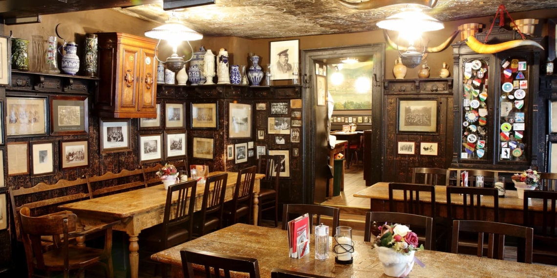Wer sich aus der Starre lösen kann und sich von Klaviermusik und Bedienung ins nächste Zimmer geleiten lässt, wird aus dem Staunen nicht mehr herauskommen, denn im „Studentenzimmer“ ist er von allen nur erdenklichen Artefakten umgeben: Alte Fotografien, Briefe, Anzeigen, Urkunden und Gemälde beherrschen das Bild. Von den Decken hängen Trinkhörner und in den Tischen haben sich unzählige Generationen von Gästen und vor allem Studenten mit Schnitzereien verewigt. Hier serviert der Chef Spengel seine regionale Hausmannskost mit kurpfälzischer Gastfreundschaft und einem Lächeln auf den Lippen.