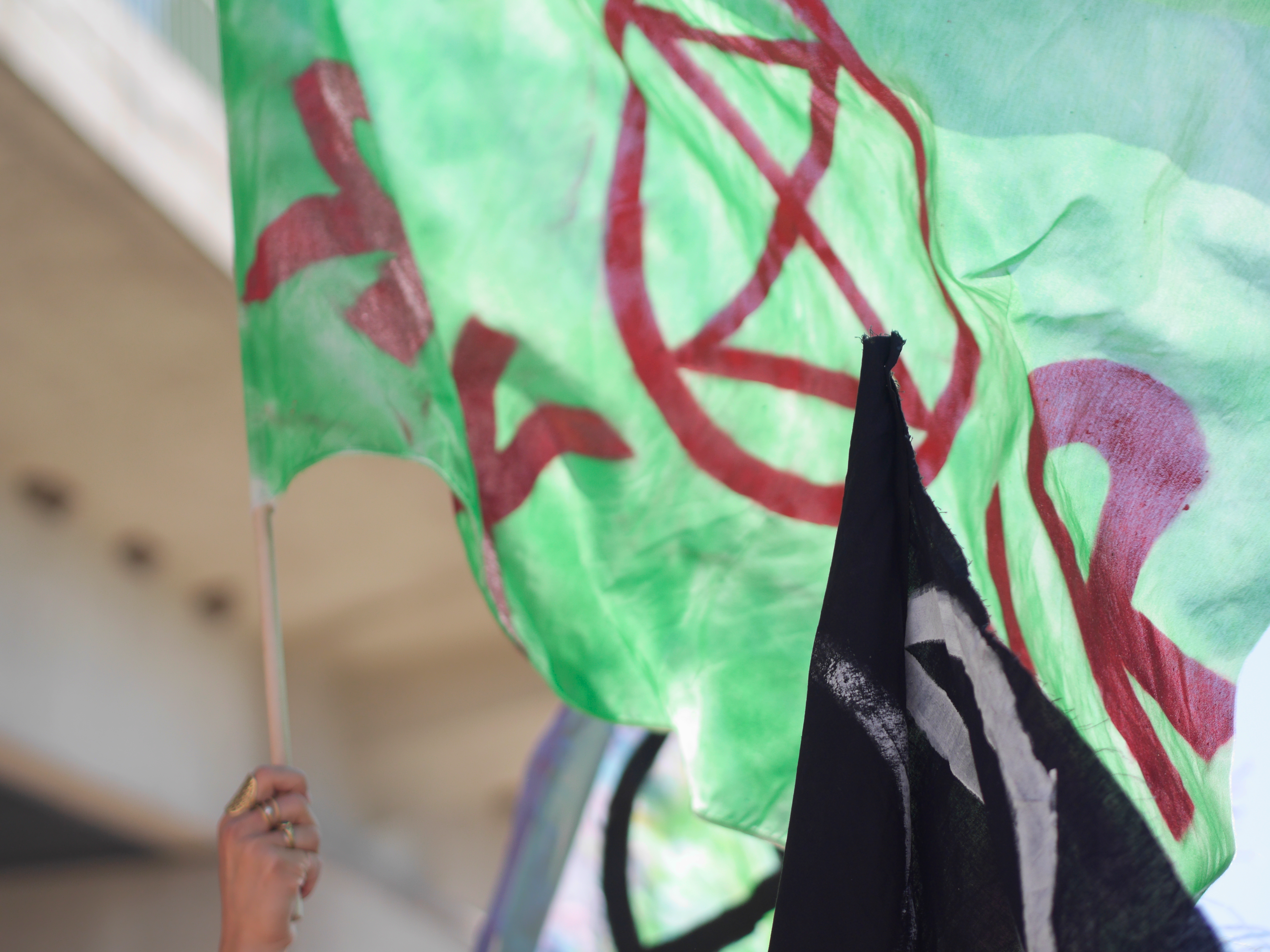 Auf den Fahnen der Brückenbesetzenden prangt eine Sanduhr in einem Kreis – ein Symbol des Aussterbens, des nahenden Endes. Es ist das Symbol der Klimabewegung Extinction Rebellion, deren Ortsgruppe die Blockade veranstaltet. Ihre Forderungen an die Regierung: der Ausruf des Klimanotstands, sofortige Maßnahmen gegen weiteren CO2-Ausstoß, Bürgerbeteiligung. Ihre Strategie ist, wie der Name schon sagt, Rebellion. Das heißt, mit gewaltfreiem zivilem Ungehorsam den wirtschaftlichen Ablauf stören. Sich auf die Fahrbahn einer Brücke hocken beispielsweise. Geldstrafen und Verhaftungen werden in Kauf genommen, sogar provoziert. Unter anderen Klimabewegungen sind solche Aktionen umstritten.