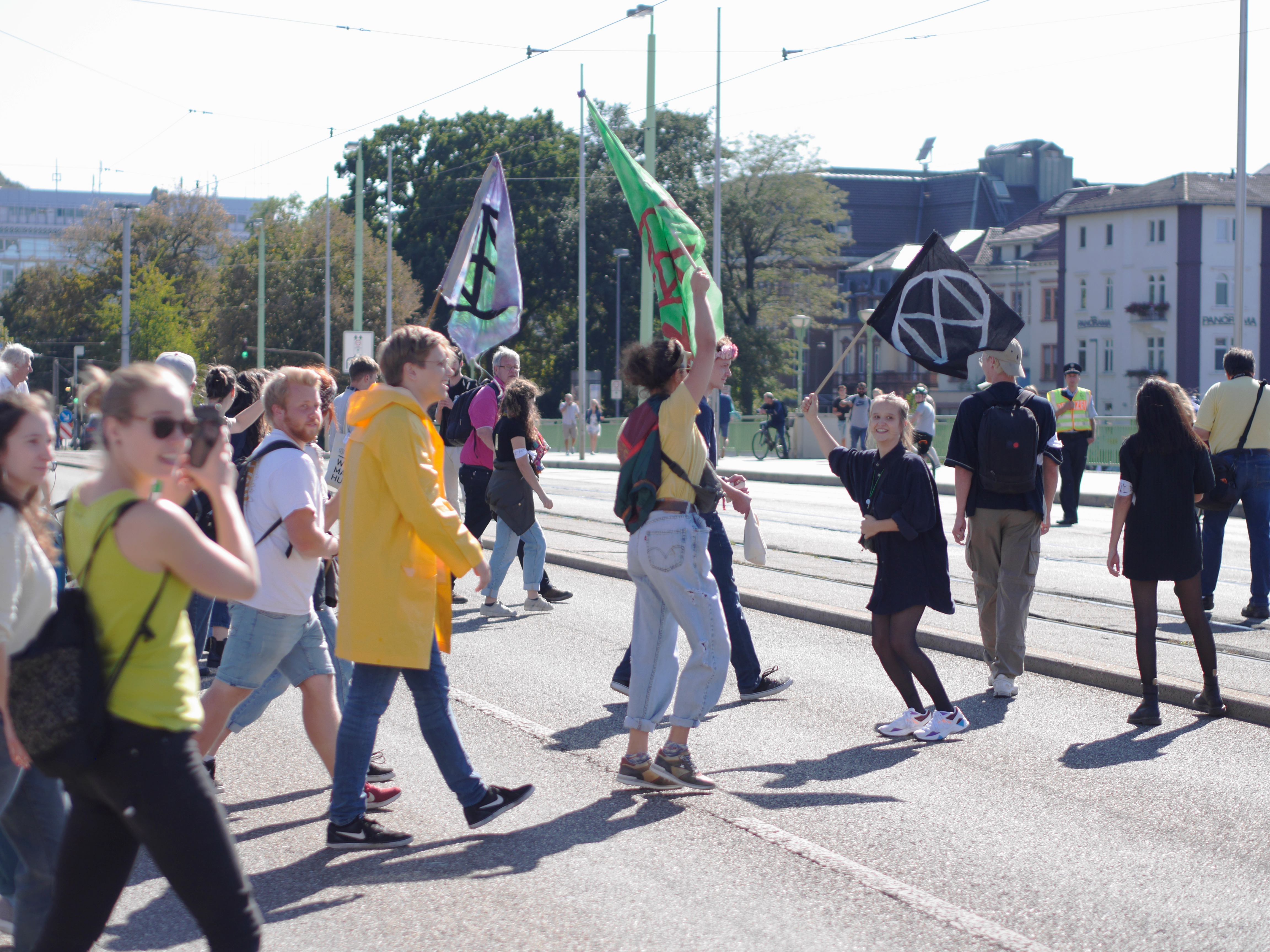 Am 21.09 blockierte Extinction Rebellion die Brücke zum Bismarckplatz – legal, mit Kooperation der Polizei. Dahinter steckt mehr als Symbolik gegen den Klimawandel