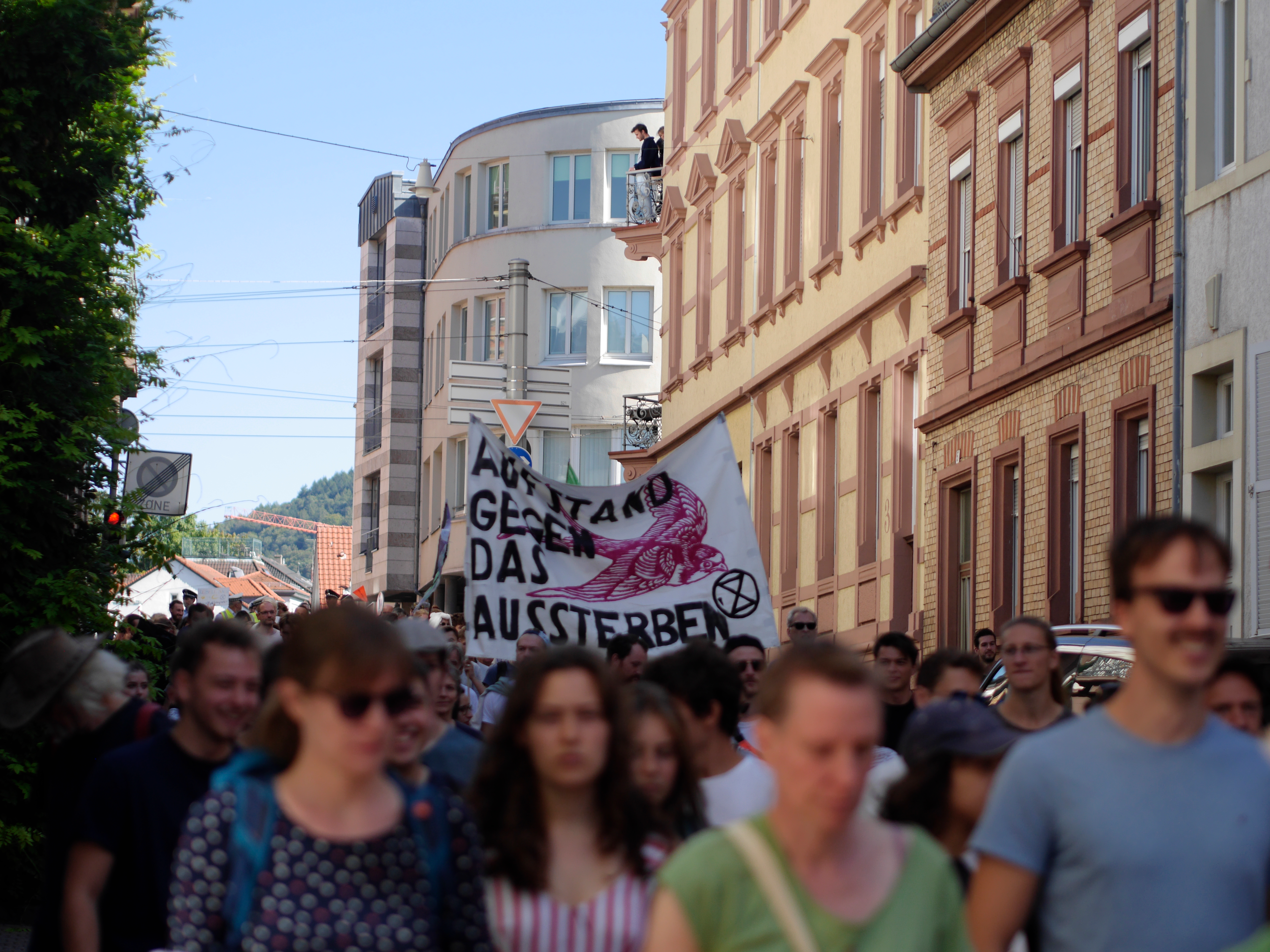 Neben Sprechchören wie „Kohle! – Stopp, Stopp, Stopp!“ schallt während des Demonstrationszugs zum Neuenheimer Marktplatz Hurra die Welt geht unter von K.I.Z – ein optimistisches Lied über die Endzeit, in dem die Rapper den Zusammenbruch des jetzigen Wirtschafts- und Wertesystems besingen. Die anschließende basisdemokratische Versammlung widmet sich den Fragen: Wie stellt ihr euch das Jahr 2050 vor? Wovor habt ihr Angst? Eine Rednerin fürchtet sich vor den Kämpfen um Ressourcen, die ihren Nachfahren bevorstünden. Eine zweifelt, ob sie Kinder in so eine kaputte Welt setzen will (viel Zustimmung aus dem Publikum). Andere wiederum erklären, was man noch tun könnte: aufklären, gegenlenken, das Wirtschaftssystem ändern – rebellieren.