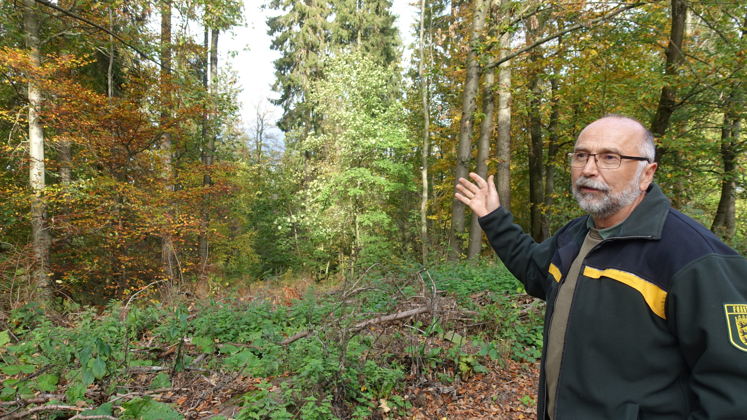 Die sogenannten Jahrhundertstürme in den 90er Jahren waren ein weiterer gravierender Einschnitt für die Forstwirtschaft. Seit 1991 hat man die Forstwirtschaft konsequent umgestellt. Statt dem Kahlschlag, bei dem alle Baumarten auf einer Fläche gefällt werden, ist heute die Naturverjüngung üblich. Bei dieser lässt man die heruntergefallenen Samen den neuen Wald begründen. Seitdem haben wir nur noch dort gepflanzt, wo entweder die Borkenkäfer oder ein Sturm uns Lücken beschert haben oder wir bewusst eine Änderung vornehmen wollten. Aufgrund des Borkenkäfers und der stärkeren Stürme wird seit geraumer Zeit vermehrt auf Laubholzarten gesetzt.