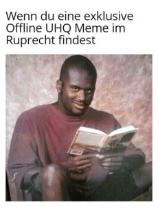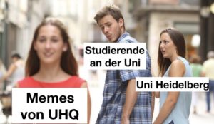 Neben der besonderen Affinität für Bernie, finden sich Exzesse in der Untere und aktuelle Themen rund um die Uni und Heidelberg auf der Liste beliebter Vorlagen der Memes. Zu Zeiten, in denen die HeiCONF-Präsenz der Studierenden höher ist als die Zeit, die sie in der Unteren verbringen und Spaziergänge am Neckar plötzlich als spannendstes Event der Woche gesehen werden, bietet UHQ eine kleine Verschnaufpause. Die Memes erinnern daran, dass immer noch gemeinsam gelacht werden kann und das Leben nicht zu ernst genommen werden sollte.