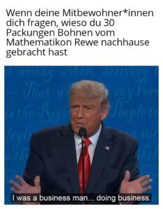 Apropos Beiträge teilen; wenn ihr euch fragt, wie ein Post bei UHQ entsteht, müssen wir euch leider enttäuschen. Denn „der Prozess ist relativ unspektakulär“, wie Korki verdeutlicht. Hat einer der Admins eine Idee, erstellt diese/r kurzerhand ein Meme. Für das Produzieren von Videos, Fotos oder GIFs mit Meme-Charakter gibt es Apps, beispielsweise mematic. Über WhatsApp wird das Meme dann kurzerhand mit den anderen abgesprochen und gegebenenfalls verbessert, eine passende Caption gefunden und voilà – schon kann gepostet werden.