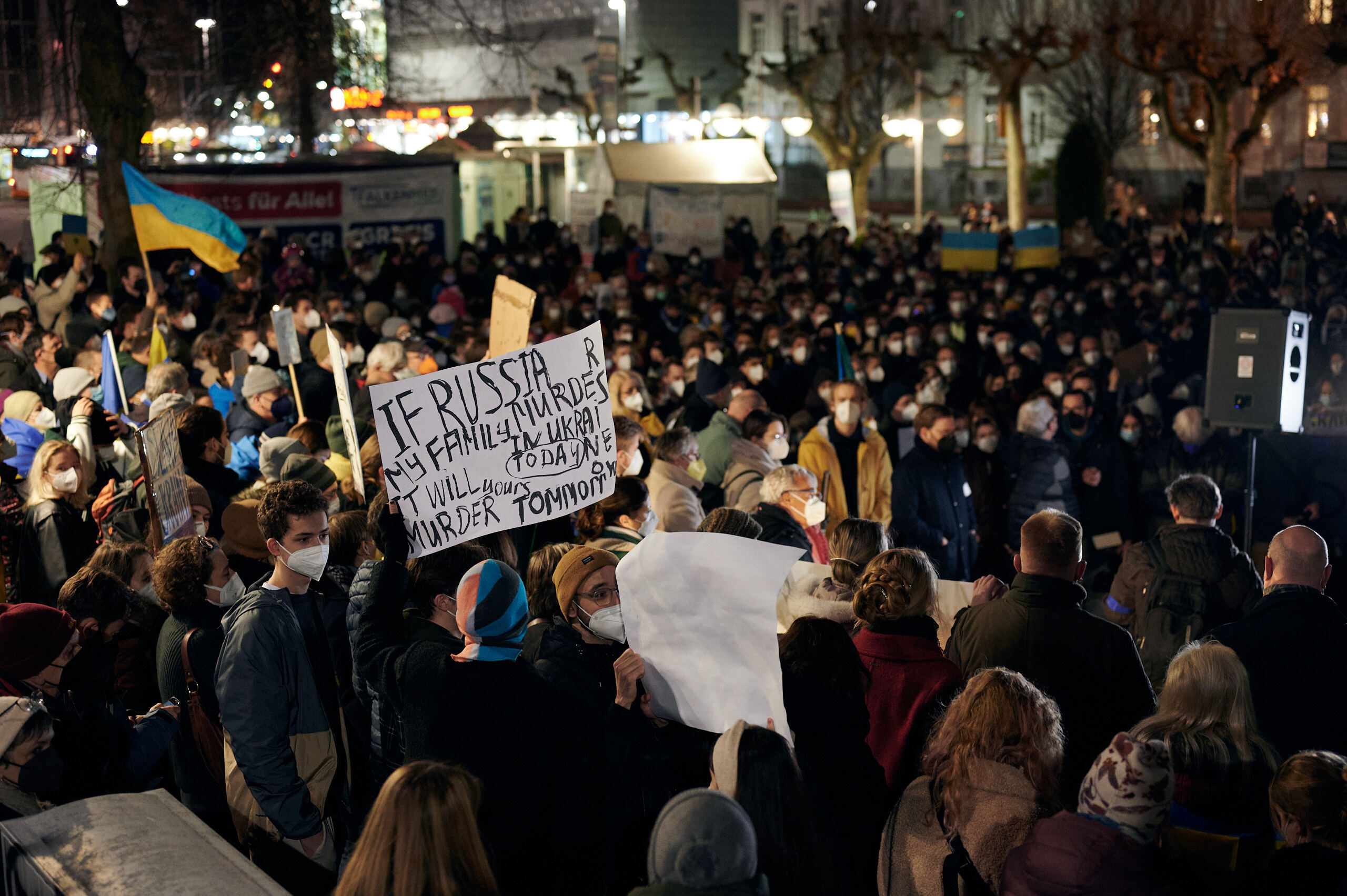 Unter dem Motto „Frieden für die Ukraine“ fand am Donnerstagabend eine Kundgebung auf dem Bismarckplatz statt. Ein Bündnis aus der Deutsch-Ukrainischen Gesellschaft Rhein-Neckar, FDP, SPD, Grünen und Volt Heidelberg hatte dazu aufgerufen, Solidarität mit der ukrainischen Bevölkerung zu bekunden. Es traten zahlreiche Redner:innen auf, darunter Heidelbergs Oberbürgermeister Eckart Würzner und die baden-württembergische Wissenschaftsministerin Theresia Bauer (Grüne). Laut Einsatzleitung der Polizei waren bis zu 800 Menschen anwesend. Viele Menschen waren in Ukraine-Flaggen gehüllt und hatten Schilder mit Sprüchen wie „Putin stürzen“ oder „Stop Violence“ mitgebracht.