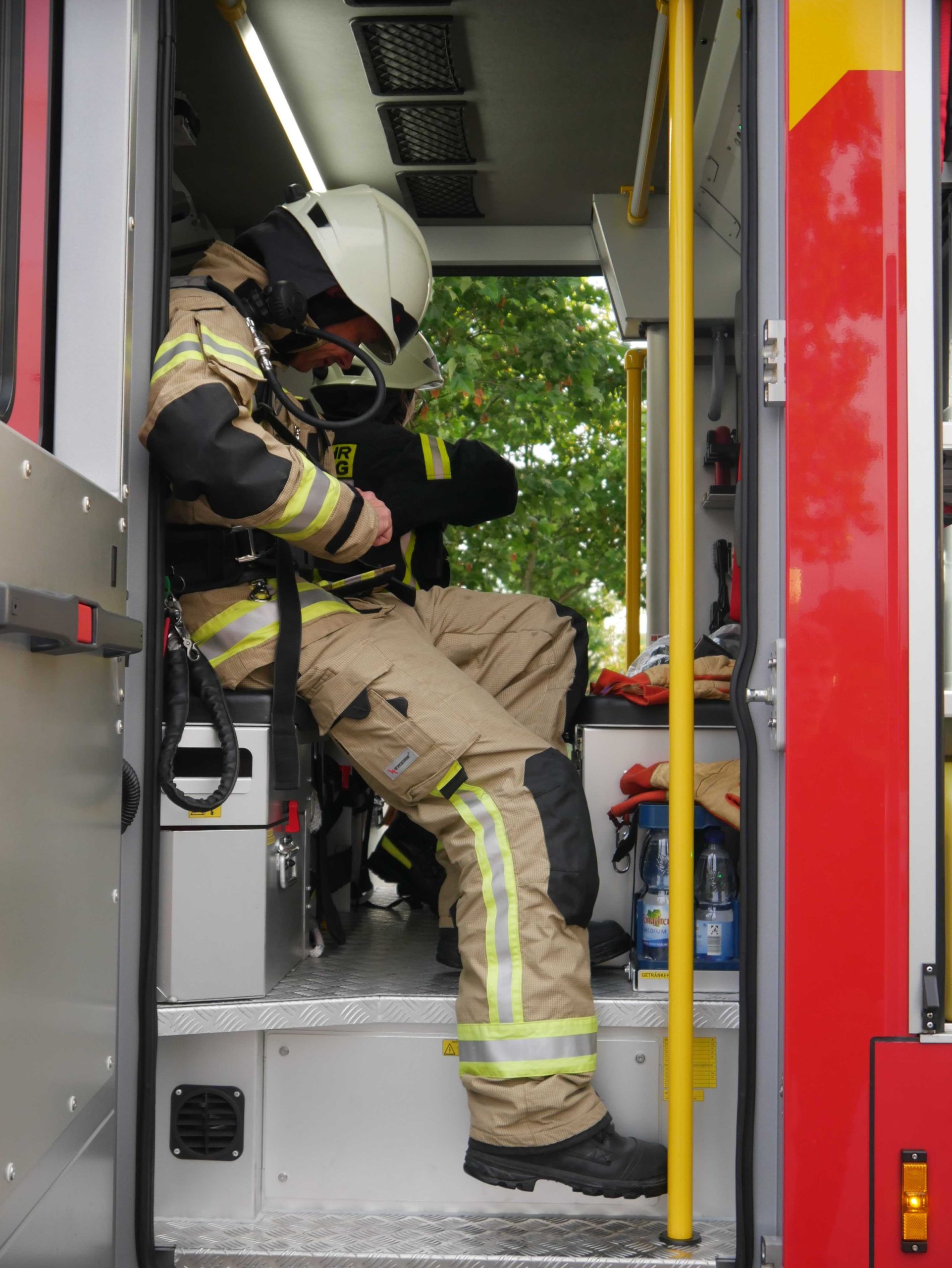 Als wir mit dem Einsatzfahrzeug von der Übung zurückfahren, wird uns angeboten, vorne zu sitzen. Ein erhabener Platz – an dieser Stelle sitzt sonst der Gruppenleiter des Einsatzes. Ein großes Gefühl und einer der vielen Gründe, an der Freiwilligen Feuerwehr teilzunehmen.