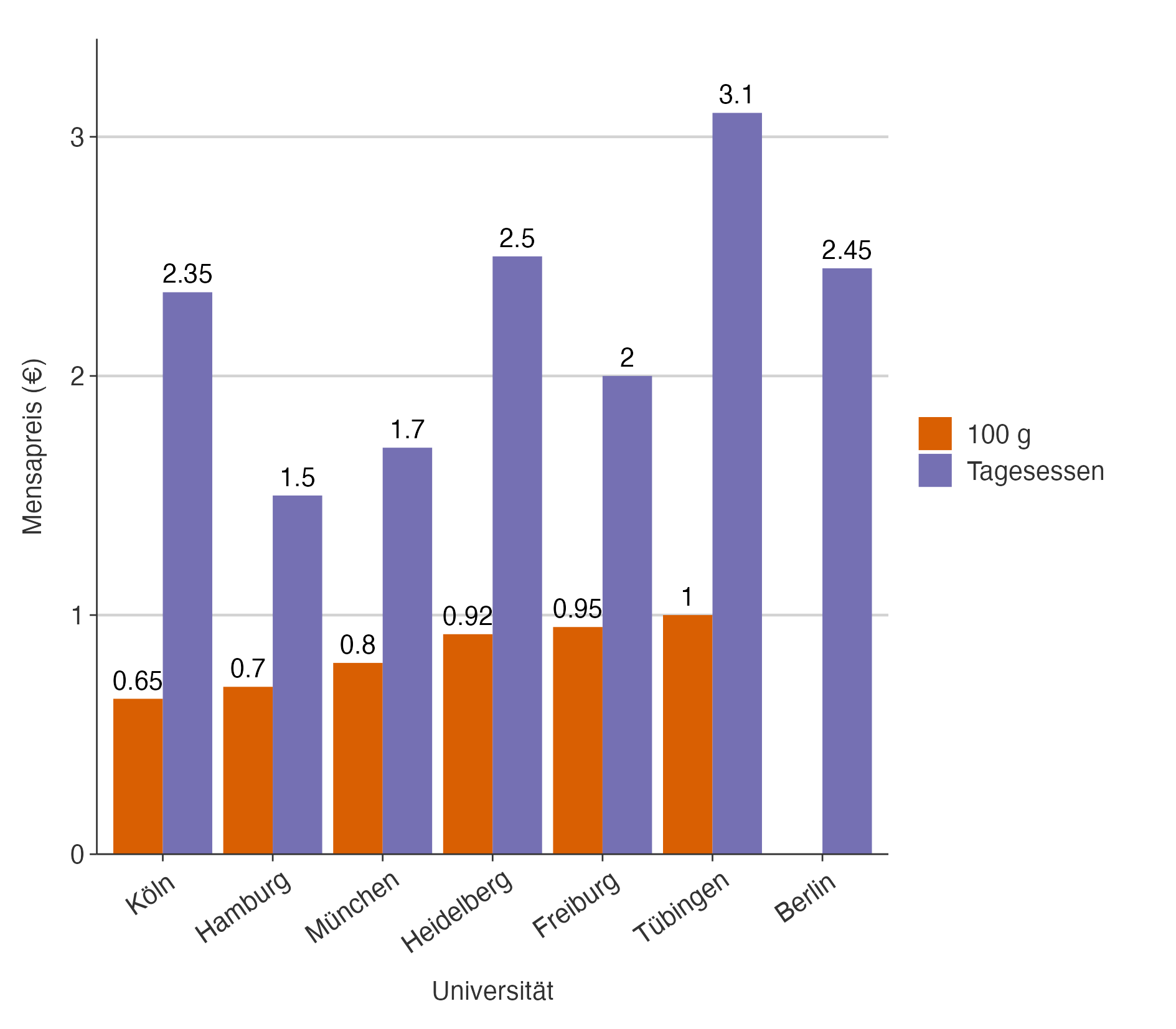 Auch der Universitäts-Kosmos wird teurer. 100 Gramm am Buffet der Mensen kosten seit dem Beginn des Sommersemesters nicht mehr 84 sondern 92 Cent. Ein Aufschlag von rund zehn Prozent.
