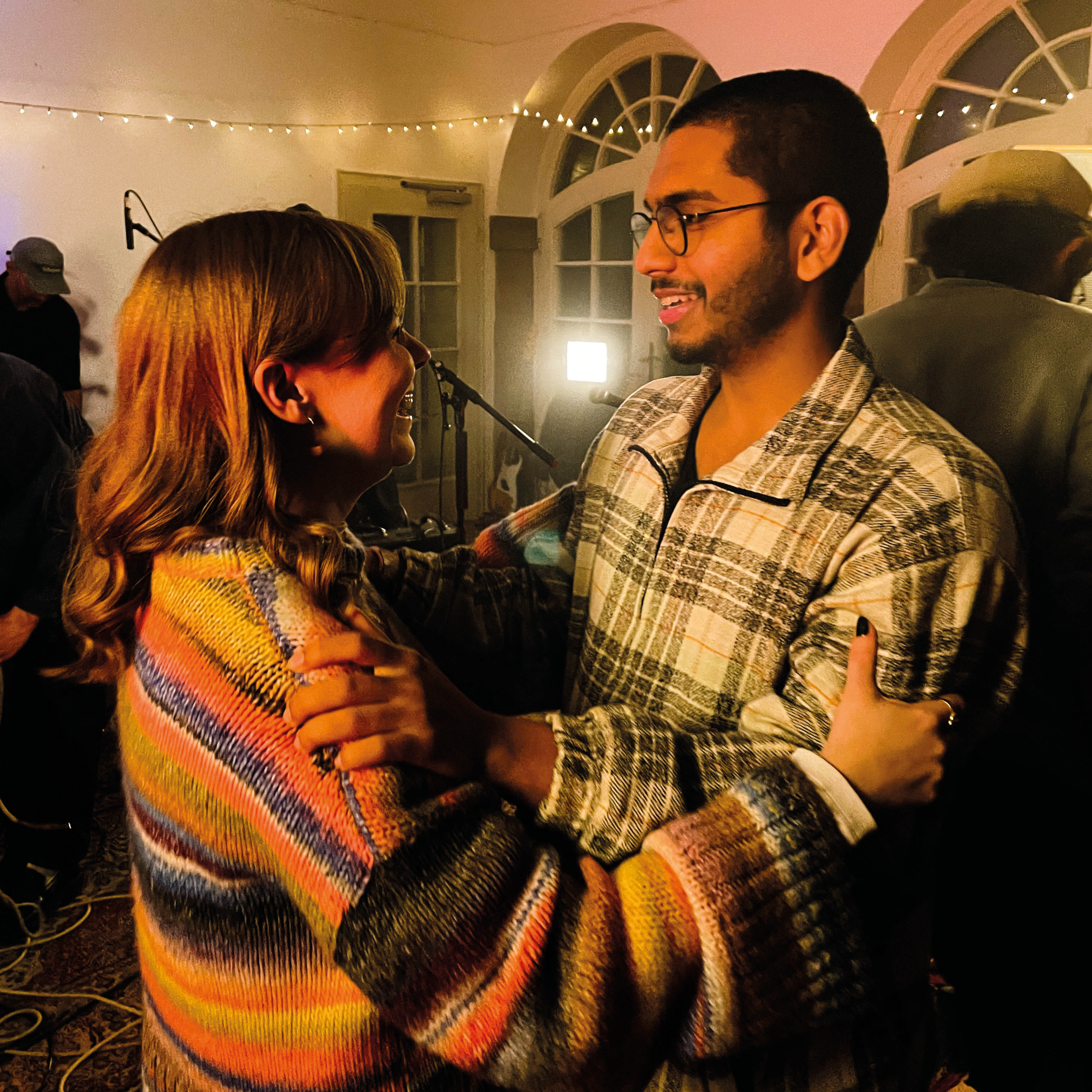 In der Woche vor Weihnachten ist die Stimmung im Palais Rischer tadellos. Resound veranstaltet sein erstes Event. Während die Musiker:innen in einem der größeren Räume ihren Soundcheck machen, wärmen sich die DJs im Nebenraum auf. Zur selben Zeit hängt ein Künstler seine Bilder auf und bereitet sich auf seinen Auftritt vor. Ayon Mukherji und Aine Fellenz führen durch den Abend und schleifen an ihrer Moderation. Dabei sieht man ihnen den Stress und die Aufregung an. Sie sorgen dafür, dass alles an seinem Platz ist, um ein musikbegeistertes Publikum zu empfangen. Der Rest der Crew baut Kameras auf. Bald kommen die ersten Gäst:innen.