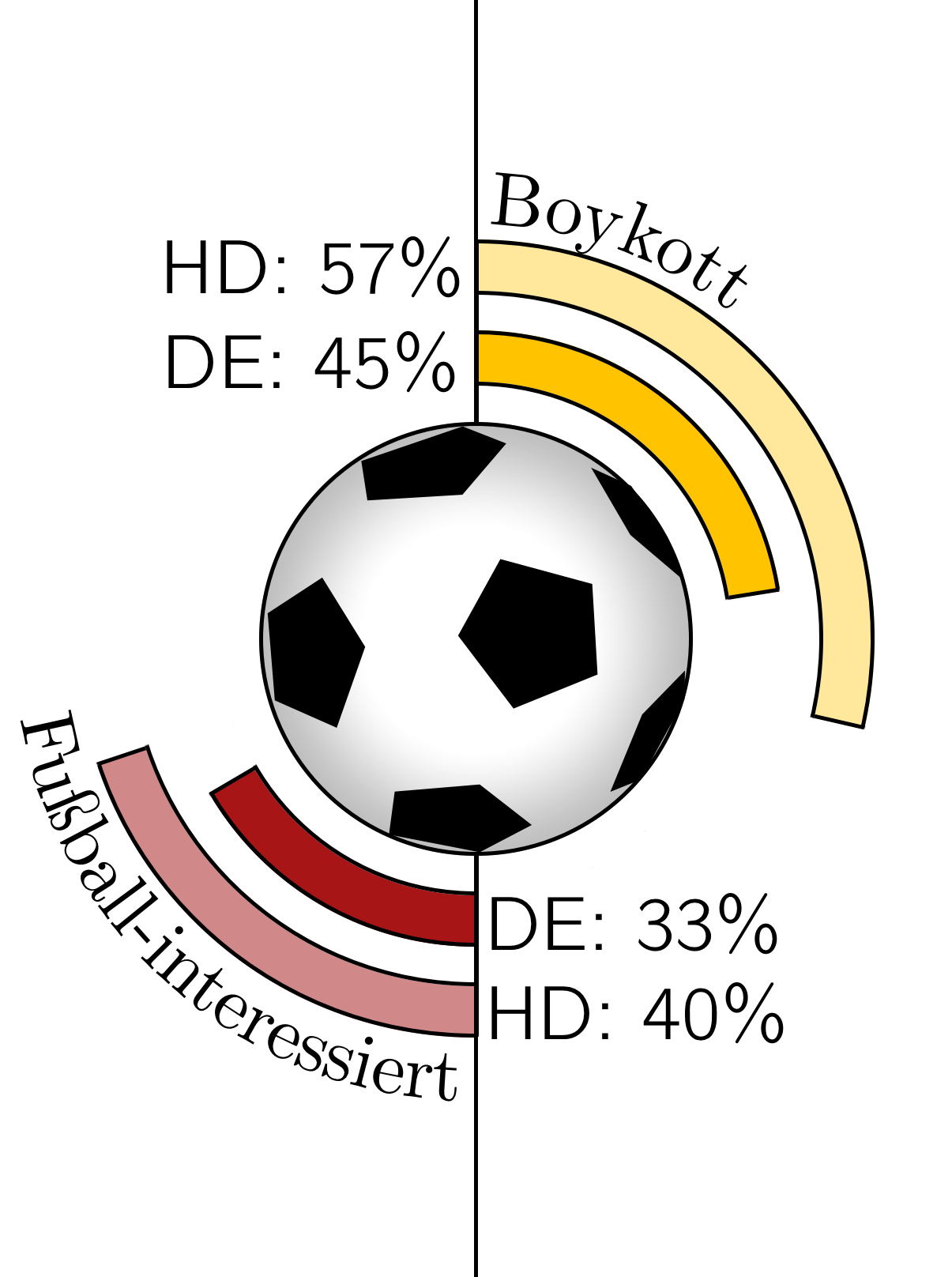 Die Studie der beiden Studierenden zeigt: Heidelberger Studis sehen die WM noch kritischer als der deutsche Durchschnitt, während das allgemeine Fußballinteresse überdurchschnittlich hoch ist. Im Gegensatz zu den 45 Prozent der Deutschen, die aussagten, nichts von der WM sehen zu wollen, boykottierten 56,8 Prozent der Heidelberger Studierenden. Allerdings: 40 Prozent der Heidelberger Studierenden gaben an, fußballinteressiert zu sein. In der Gesamtbevölkerung waren es nur 33 Prozent.