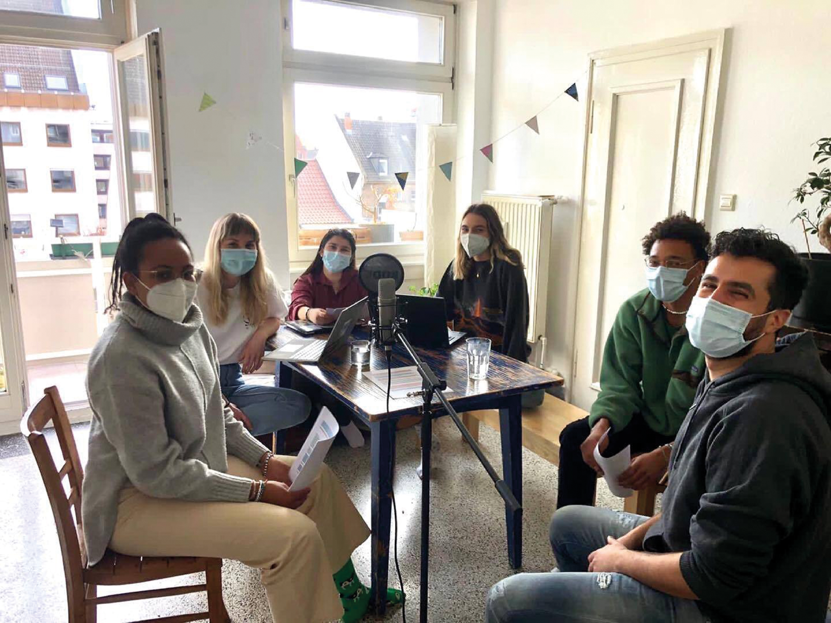 Die Podcast-Produzent:innen bereiten gemeinsam die Aufnahme vor. Foto: Privat