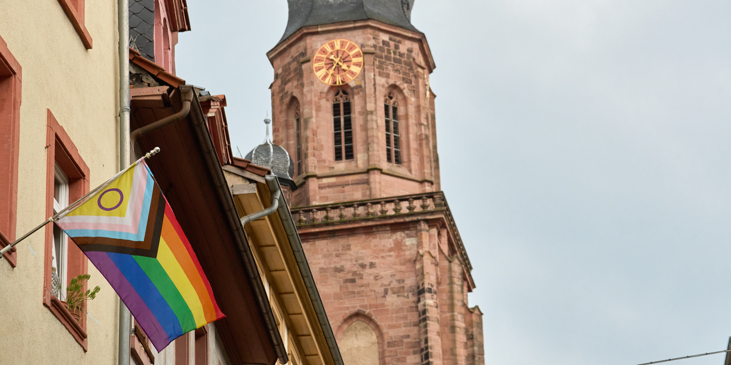 Tücher in allen Farben des Regenbogens durchspannen das gotische Gewölbe, die Peterskirche ist gut besucht. Doch das ist nicht das einzig Ungewöhnliche an diesem Gottesdienst: Die Polizei ist in der Nähe und auf Abruf. An diesem Sonntag ist Queergottesdienst – ein Projekt, mit dem sich queere Christ:innen in Heidelberg seit vier Jahren einen Raum für Austausch und Gottesdienst schaffen. Unter ihnen sind viele Studierende der Theologie. Sie wollen Menschen mit marginalisierten Sexualitäten und Identitäten sowie allen, die sich mit ihnen verbunden fühlen, einen sicheren Raum geben. Vor allem aber denen, die schlechte Erfahrungen mit der Kirche gemacht haben. In ihren Gottesdiensten stellen sie Fragen wie: Ist Gott ein Mann?