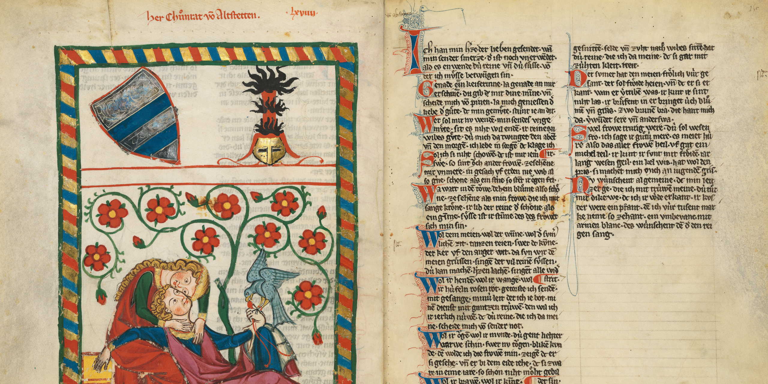 Die Handschrift wird von der Heidelberger Universitätsbibliothek unter der Signatur „Codex Palatinus germanicus 848“ verwahrt und ist eine der weltweit prominentesten Zeugnisse des deutschsprachigen Mittelalters. Während die prächtigen Illuminationen weltbekannt sind, ist der Codex mit seinen 426 Pergamentblättern die umfangreichste deutschsprachige mittelalterliche Lyriksammlung. Heute geht man davon aus, dass der Codex Manesse, der auch als „Große Heidelberger Liederhandschrift“ bekannt ist, zwischen 1300 und 1340 in Zürich in mehreren Phasen entstanden ist. Thematisch befasst er sich vorwiegend mit der höfischen Minne vom Beginn des frühen Minnesangs bis in die Spätphase. Die ritterlich-höfische Liedkunst ist eine Form der Auseinandersetzung der Adelsgesellschaft mit der Liebe. Auch moralisch-didaktische, politische und geistlich-religiös geprägte Sangspruchdichtung wurde verschriftlicht.