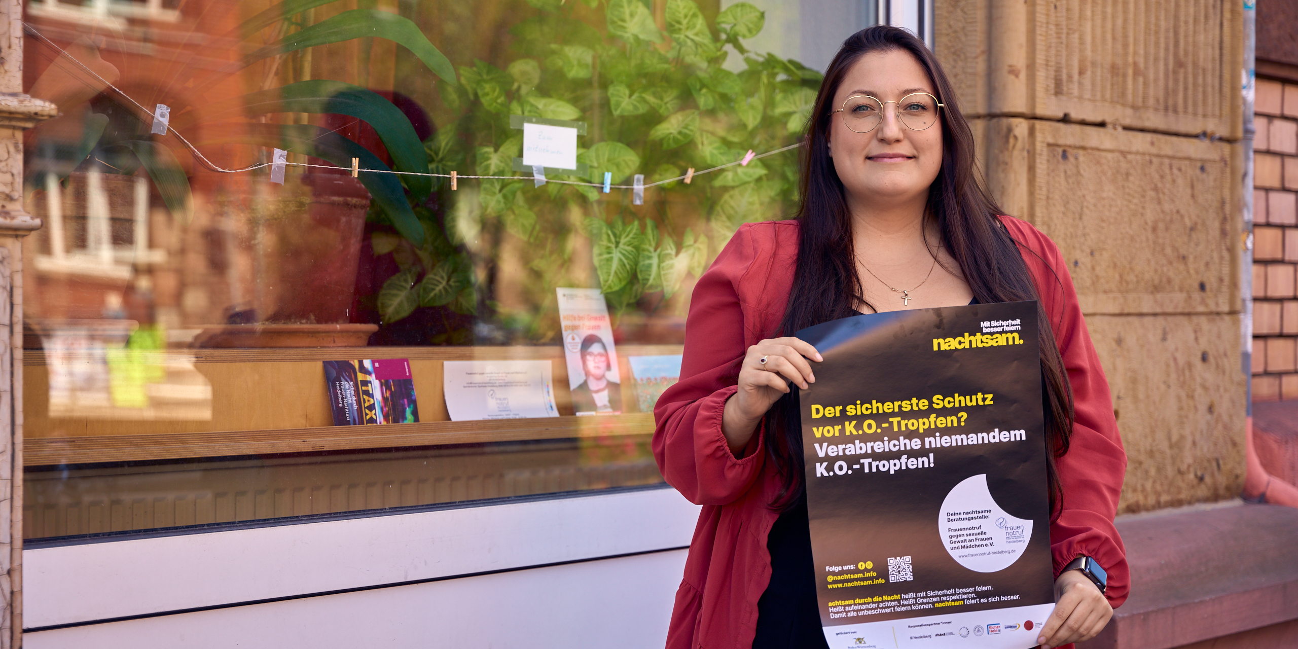 „Es gibt keinen 100-prozentigen Schutz vor Übergriffen im Nachtleben. Daher ist es gleichzeitig wichtig zu wissen, welche Schritte man gehen kann, um an handlungskompetente Personen zu gelangen. Das versuchen wir mit den Kampagnen ‚Luisa ist hier‘ und Nachtsam umzusetzen“, erklärt Miriam Ott. Die Pädagogin ist beim Frauennotruf Heidelberg für Fortbildungen im Bereich der sexualisierten Gewalt zuständig und schult unter anderem die Nachtszene. Die kostenfreien Kampagnen ergänzen sich inhaltlich, weshalb sie seit 2021 im Paket schult. Ott sensibilisiert Mitarbeitende des Nachtlebens und vermittelt durch eine betroffenenzentrierte Haltung Handlungssicherheit im Umgang mit sexualisierter Gewalt und Diskriminierung.