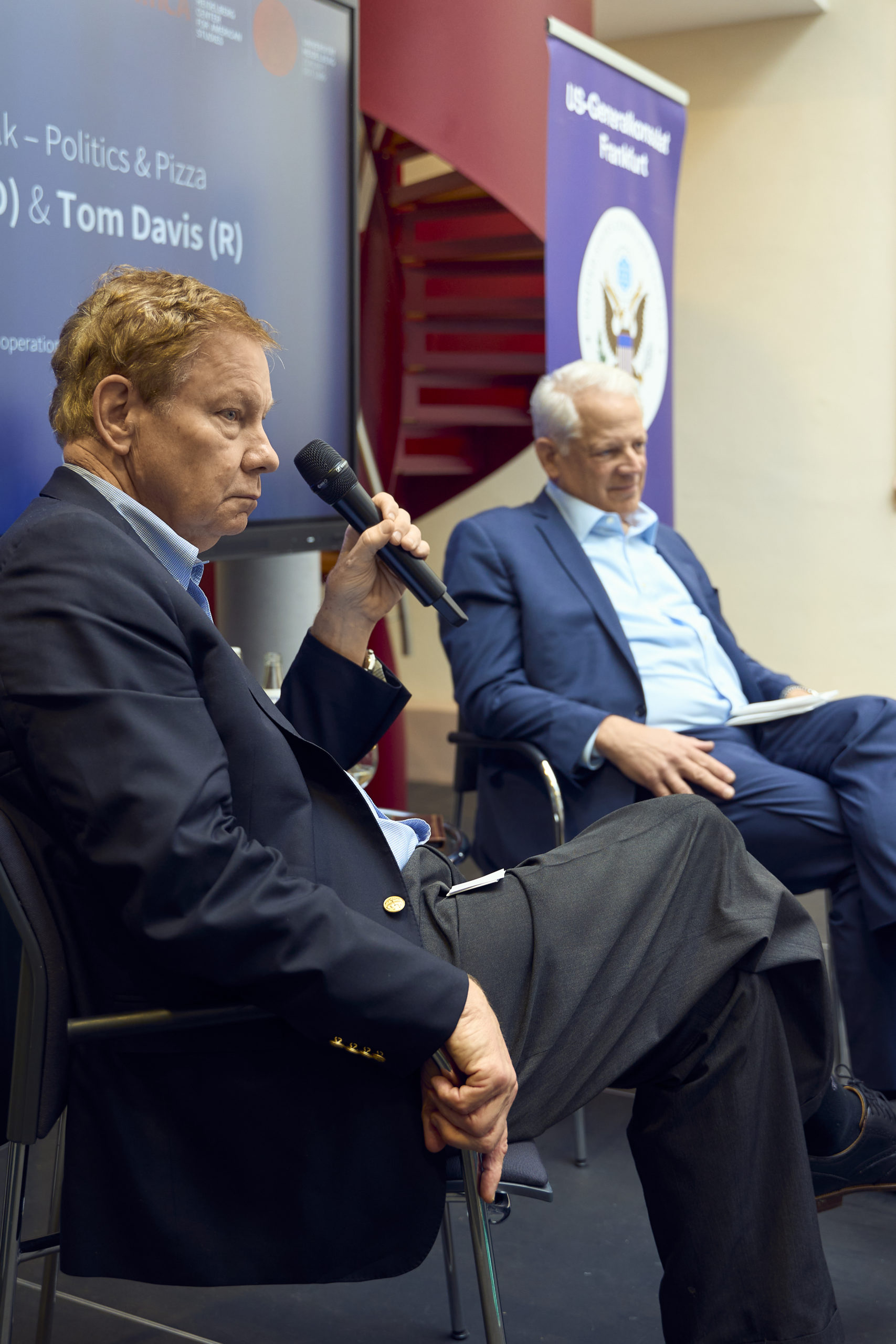 In diesem Zusammenhang hatten die ehemaligen US-Delegierten, Tom Davis und Steve Israel, im Rahmen einer politischen Redner-Tour durch Deutschland einige durchaus spannende und wertvolle Ansichten zu bieten. Tom Davis, ein Mitglied der Republikanischen Partei, repräsentierte den Bundesstaat Virginia 13 Jahre lang als Delegierter im US-Repräsentantenhaus. Steve Israel, Mitglied der Demokratischen Partei, vertrat hingegen den Bundesstaat New York für 16 Jahre im US-Repräsentantenhaus. Basierend auf ihren langjährigen beruflichen Erfahrungen rund um das Thema Wahlen stellten sie sich bei ihrem Besuch am Heidelberg Center for American Studies (HCA) einer fesselnden Debatte zum Thema Präsidentschaftswahlen, wobei der Fokus auf Donald Trump und seiner erneuten Kandidatur lag.