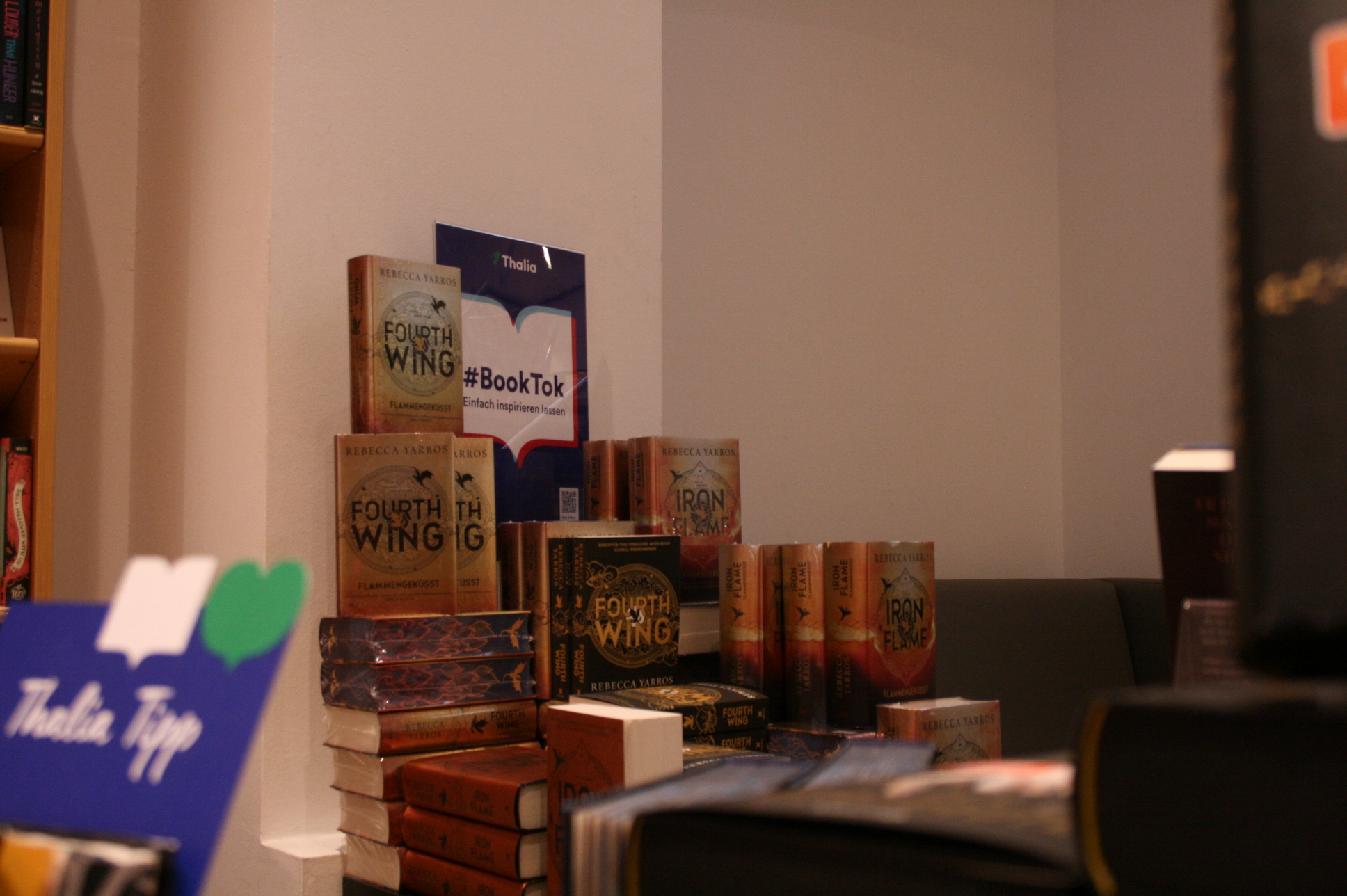 Das Phänomen von „Booktok“ hat mittlerweile eine solche Größe erreicht, dass sogar die Frankfurter Buchmesse – die größte in Deutschland – seit 2022 offizieller Partner von Tiktok ist. Die Plattform ist essenzieller Bestandteil des Veranstaltungsprogramms geworden, was durch die Einführung der Tiktok-Awards deutlich wird. Auch große Buchhandlungen wie Hugendubel und Thalia nutzen Tiktok geschickt, um eine neue, jüngere Zielgruppe anzusprechen. Dabei gehen sie über die bloße Bewerbung ihrer Produkte hinaus und setzen auf den Aufbau einer Community. Dies stärkt nicht nur ihr Markenimage, sondern fördert auch die Lesekultur – denn junge Menschen kehren immer mehr in Buchhandlungen zurück. Das Vorurteil, dass diese nicht mehr lesen würden, widerspricht ganz klar den Zahlen. Daten einer GfK-Studie (Growth from Knowledge Konsum-Analysen) zeigen, dass Menschen im Alter von 16 bis 29 Jahren im Jahr 2022 durchschnittlich zwölf Bücher erwerben. Dies markiert einen Anstieg gegenüber dem Wert von 7,5 Büchern im Jahr 2017. Die kurzen Videos, die unter dem Hashtag „Booktok“ auf verschiedenen Social-Media-Plattformen erscheinen, haben also zweifellos einen Einfluss auf das Kaufverhalten der Jugendlichen. Ganz anders als bei einer üblichen Rezension geht es in diesen Videos darum, die Zuschauer:innen mit Emotionen von den Büchern zu überzeugen. Außerdem geht es nicht mehr nur um den Inhalt des Buches. Farbige Buchschnitte, ordentlich sortierte Bücherregale oder besondere Lesezeichen sind schon längst Teil des Hashtags „Booktok“ geworden. Das sagen auch zwei Buchhändlerinnen der Heidelberger Thalia-Filiale. Laut ihnen werden vor allem die Bücher, die einen besonders eindrucksvollen Einband besitzen, entweder in den vier Schaufenstern oder auf den Aufstelltischen platziert.