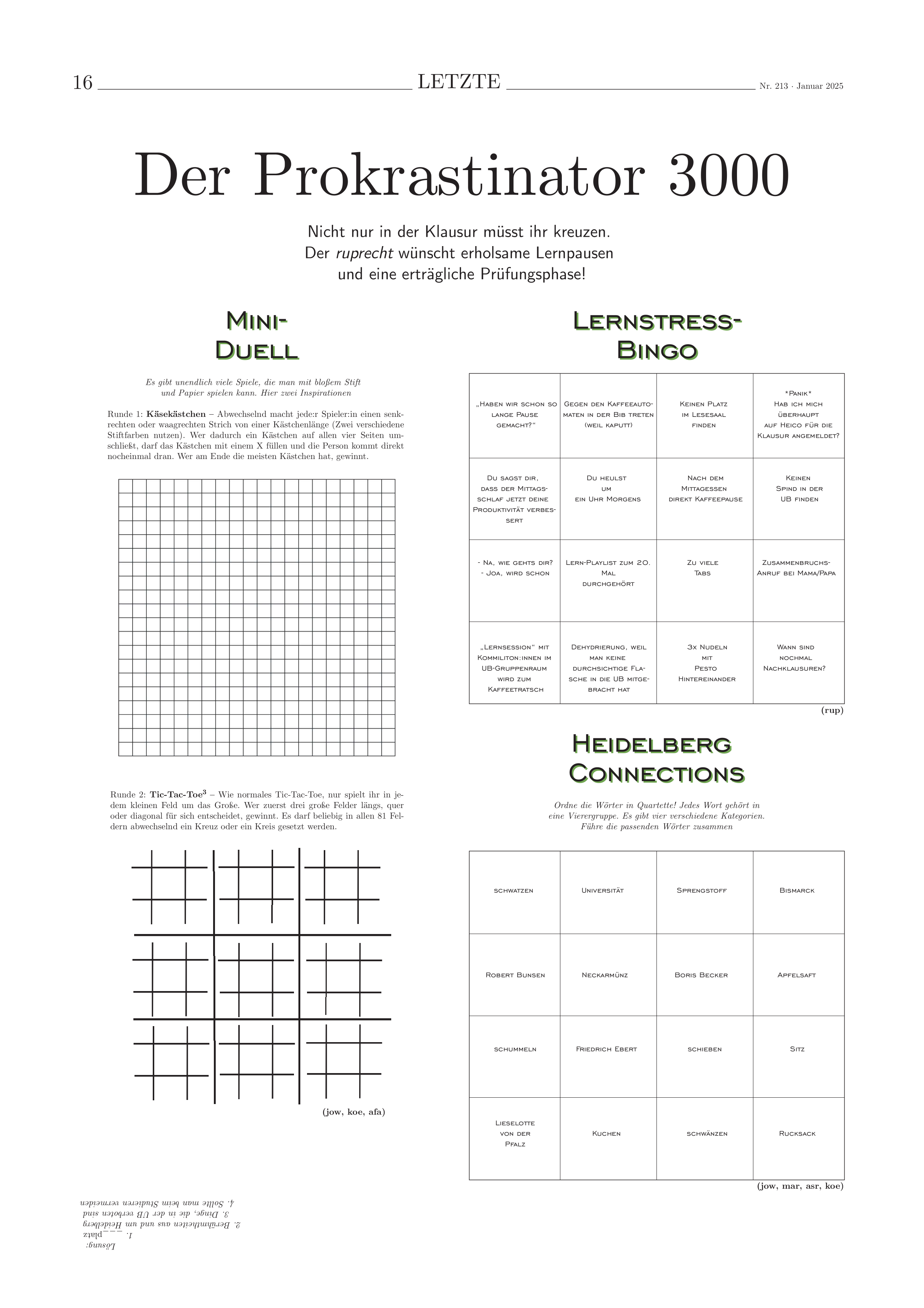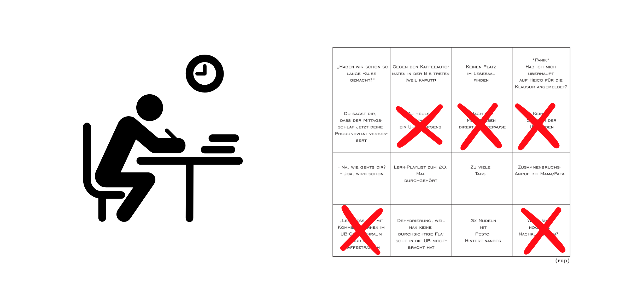 Nicht nur in der Klausur müsst ihr kreuzen. Der ruprecht wünscht erholsame Lernpausen und eine erträgliche Prüfungsphase!