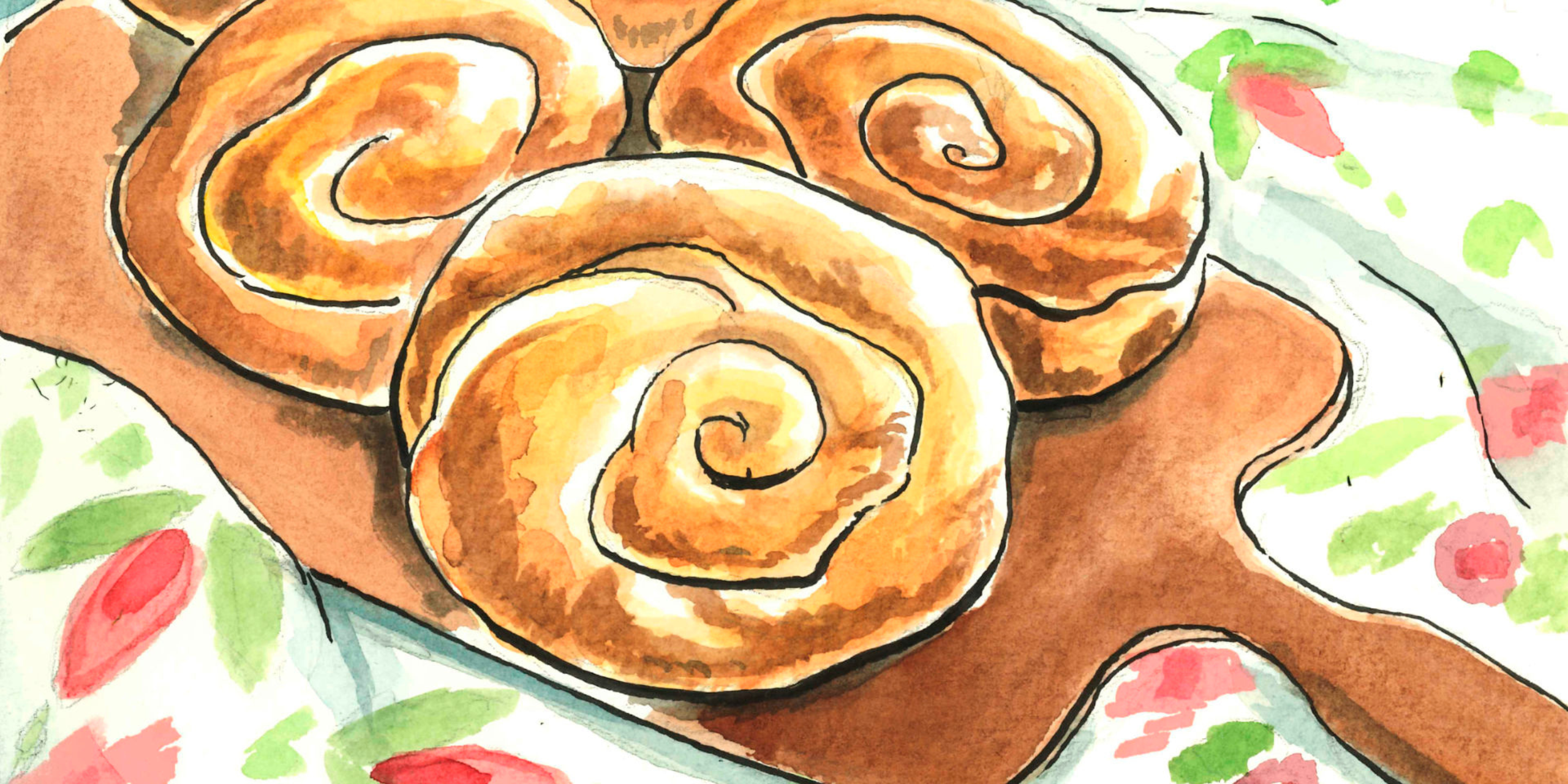 Der Teig wird idealerweise zu einer ovalen, dünnen Form ausgerollt, die man nun zur Hälfte mit der gewünschten Füllung bedeckt. Anschließend wird das Ganze zusammengerollt, sodass aus der flachen Form eine Teigschlange entsteht. Diese Schlange wird nun zu einer Schnecke eingerollt und auf ein Backblech gelegt. Dasselbe Schicksal ereilt jedes der Teigbällchen: vom Flachen zur Schlange zur Schnecke. Eine Metamorphose – fast kafkaesk!