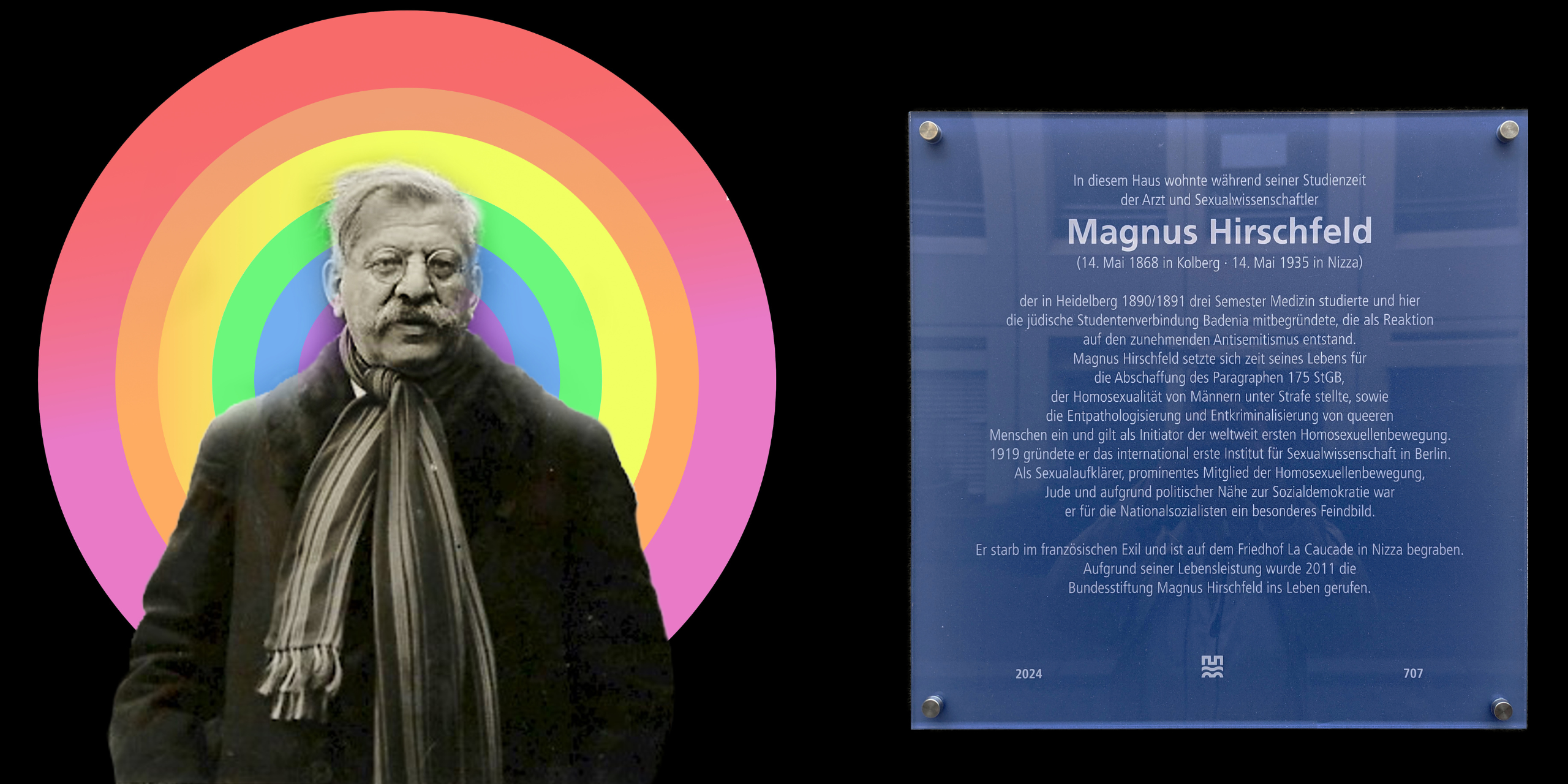 Vielen sagt der Name Magnus Hirschfeld wenig bis nichts. Das liegt unter anderem daran, dass queere Geschichte oft vergessen oder verschwiegen wird. Magnus Hirschfeld war Wissenschaftler, er war Aktivist, er war homosexuell. Auch in Heidelberg studierte Hirschfeld für einige Semester Medizin und gründete eine jüdische Studentenverbindung. Der Begründer des international ersten Instituts für Sexualwissenschaften kämp-*fte für die Entkriminalisierung queerer Menschen. Er und seine Arbeit waren bereits früh Ziel nationalsozialistischer Hetzkampagnen.