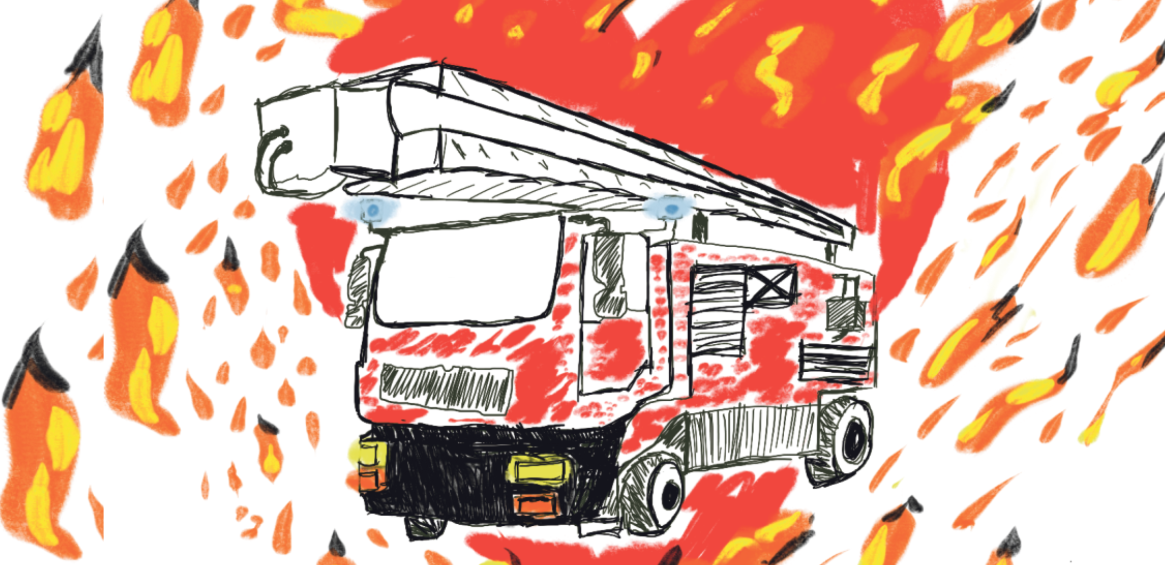Es ist Freitagabend in der Weststadt und die WG versammelt sich vor dem Laptop, um die Preise von Feuerlöschern zu vergleichen. Seit neuestem haben wir ein großes Interesse an Brandschutz. Grund dafür ist die zehnte Staffel der ARD-Serie „Feuer und Flamme – Mit Feuerwehrmännern im Einsatz“. Echte Feuerwehrleute (nicht nur Männer!) aus Heidelberg werden bei echten Einsätzen mit der Kamera begleitet. Die Retter in Rot tragen dabei Body Cams und kommentieren ihre Einsätze in Reality-TV-Style-Interviews.Großbrand in Ziegelhausen, brennende Mülleimer am Bismarkplatz und abgestürzte Paraglider am Königsstuhl: Ganz egal wen oder was die Heidelberger Held:innen löschen – wir sind dabei! Wenn die tapferen Feuerwehrmenschen zur Rutschstange rennen, um zu den Löschfahrzeugen im Erdgeschoss zu kommen, bricht in der WG-Küche eine Begeisterung aus, die Geschlecht und Sexualität transzendiert.Die Einsätze laufen dabei immer gleich ab: Ein ängstlicher Anruf erreicht die Feuerwache, die Feuerwehrleute rasen mit Tatü-Tata durch die Heidelberger Straßen. Vor Ort beruhigen sie Anwohner:innen sowie Betroffene freundlich und löschen den Brand fachmenschlich. Alle Fälle gehen gut aus, das Glutnest ist gefunden, die verletzte Seniorin sicher im Krankenhaus. Es wird sich bedankt. Ich schlafe besser im Wissen, dass Xandi, Daniel und Dominik in der Feuerwache Heidelberg die Stellung halten.Ich wünschte, alle Probleme könnten von einem feschen Feuerwehrmann mit Löschfahrzeug gelöst werden! Fenster einschlagen,Wasser drauf, fertig. Problem gelöst. Aber leider ist die Feuerwehr gegenüber manchen Gefahren machtlos: Unter der 112 kann mir keiner bei meinem Referat nächste Woche helfen, die Stadt Heidelberg will dem Frauennotruf immer noch die Gelder kürzen und die Brandmauer scheint auch nicht zu halten, egal wie viele Löschfahrzeuge im Einsatz sind.